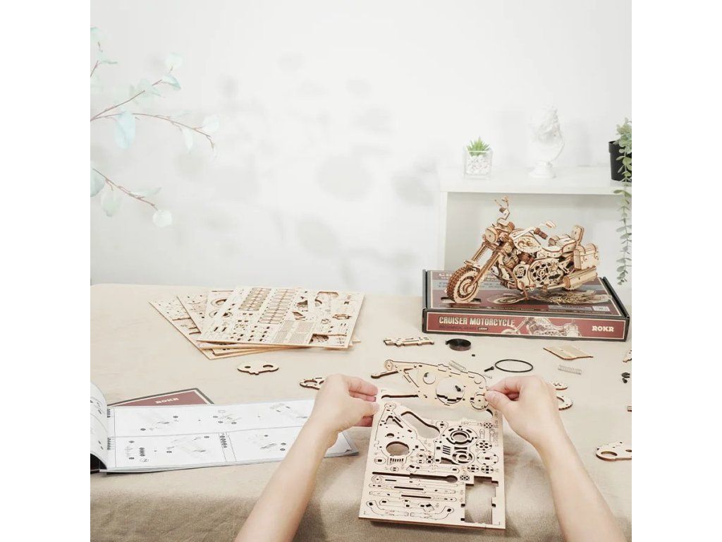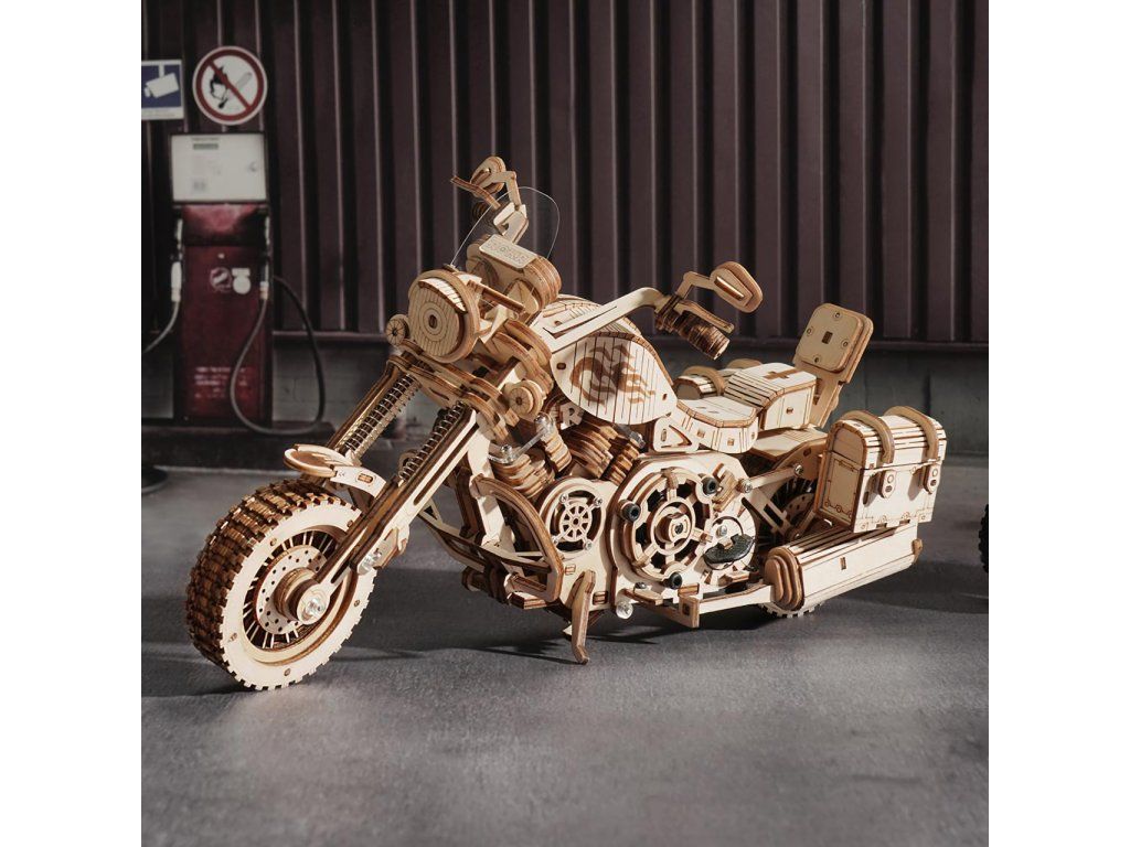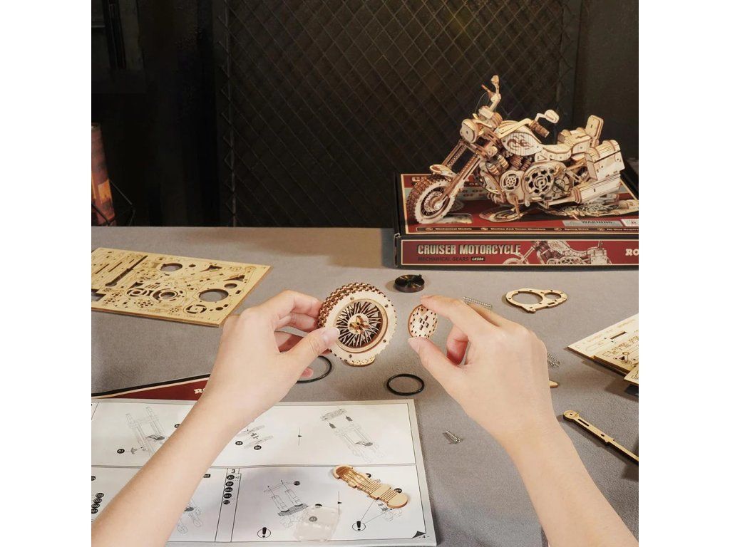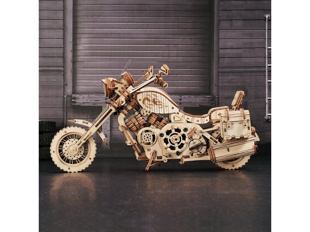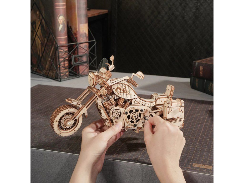 RoboTime 3D drevená mechanická skladačka Motorka Cruiser