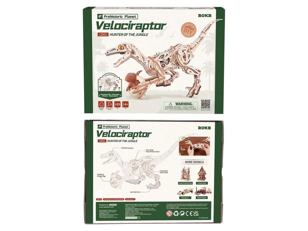 RoboTime 3D drevená mechanická skladačka Velociraptor
