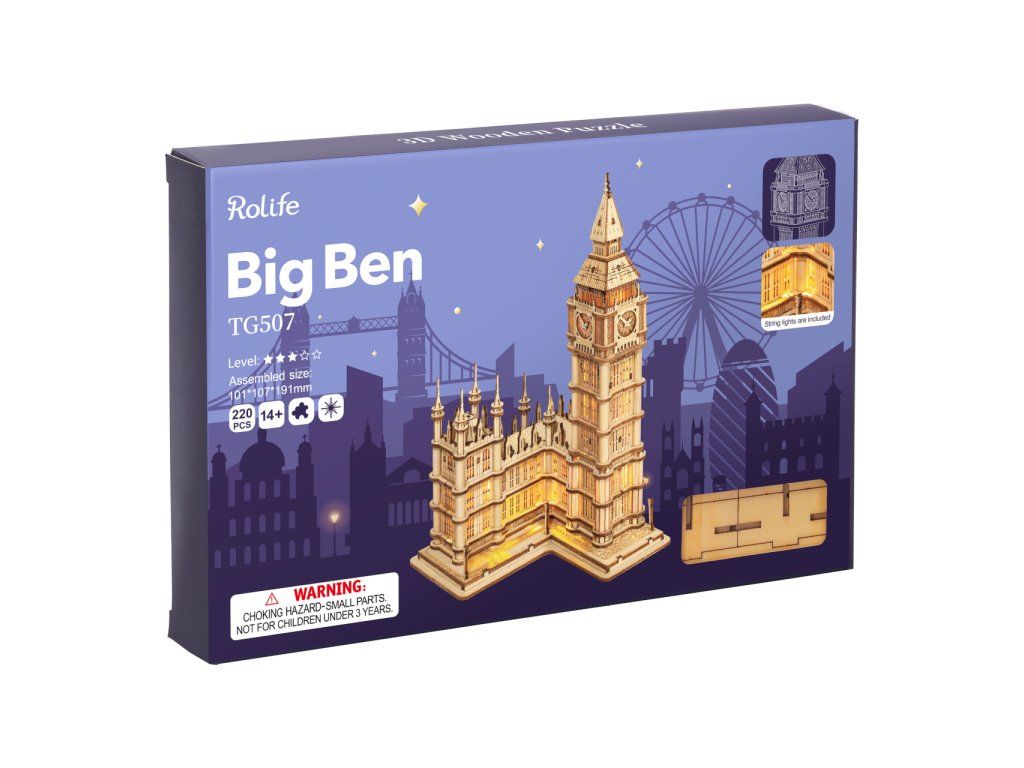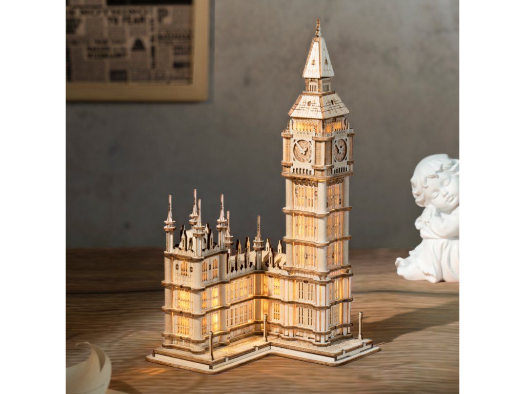 RoboTime 3D drevená skladačka Big Ben svietiaci