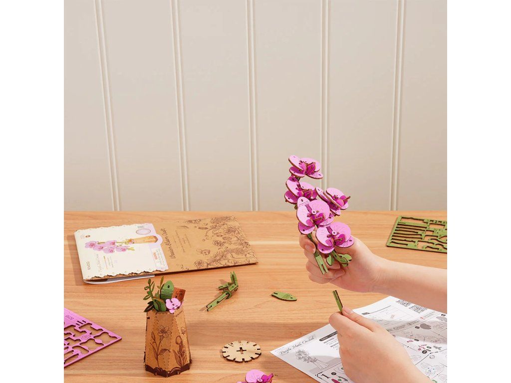 RoboTime 3D drevená skladačka Fialová orchidea
