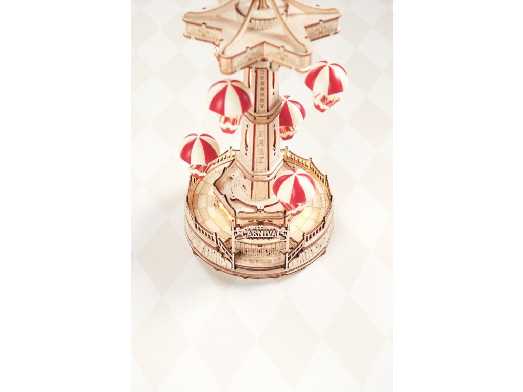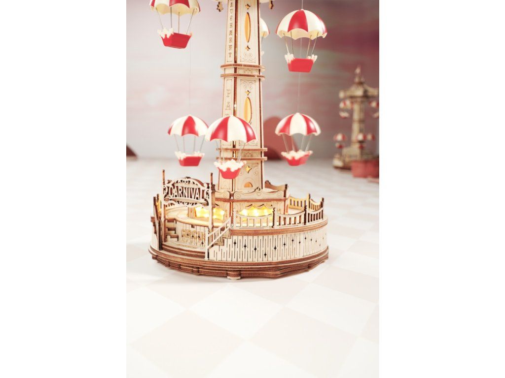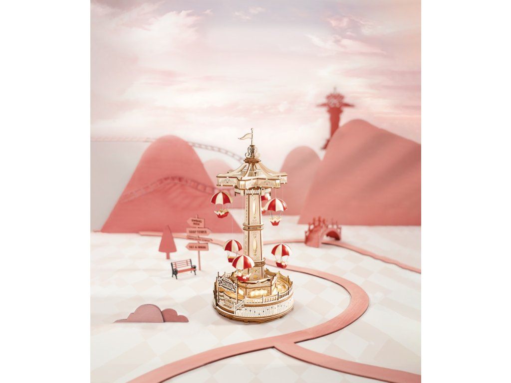 RoboTime 3D drevená skladačka hracej skrinky Kolotoč s padákmi