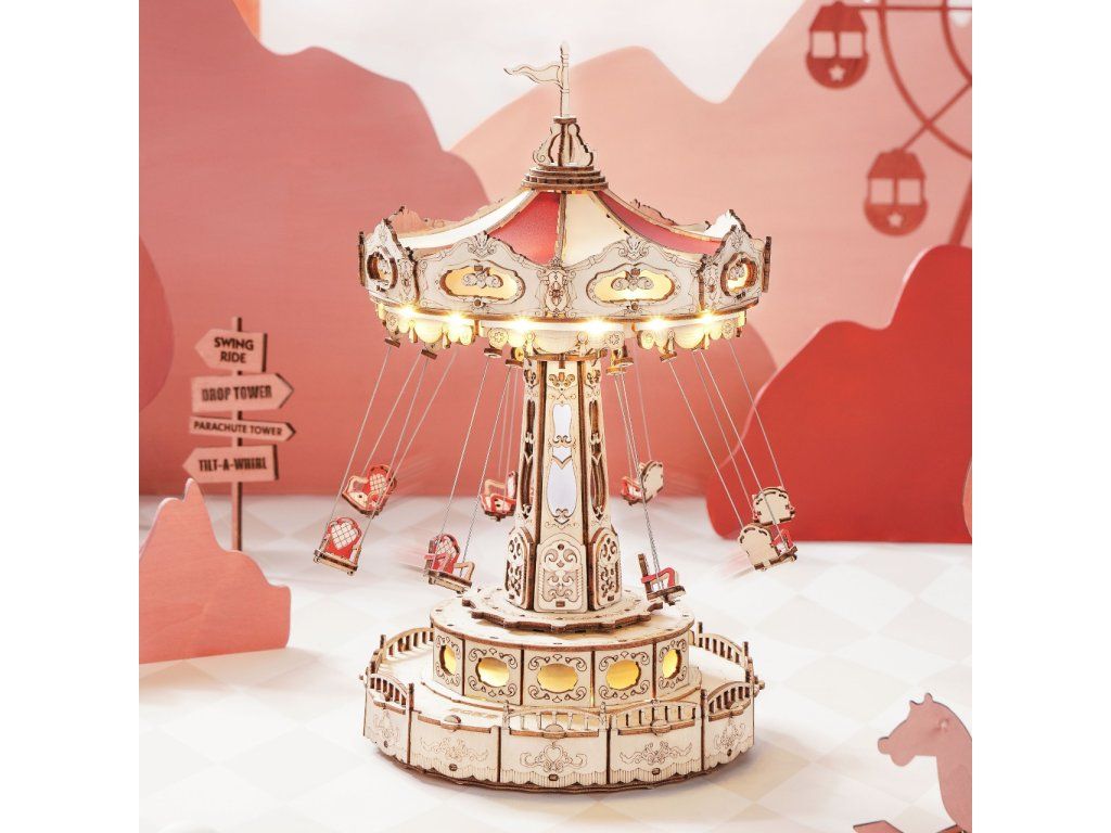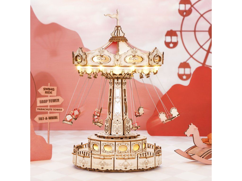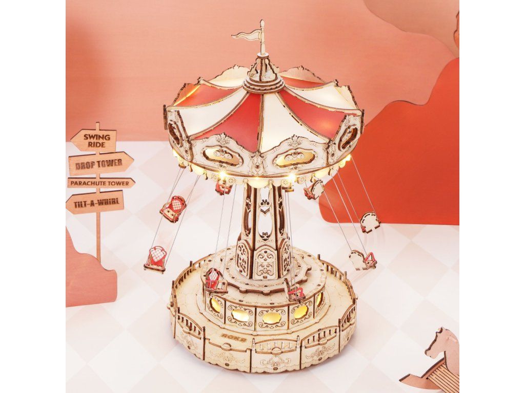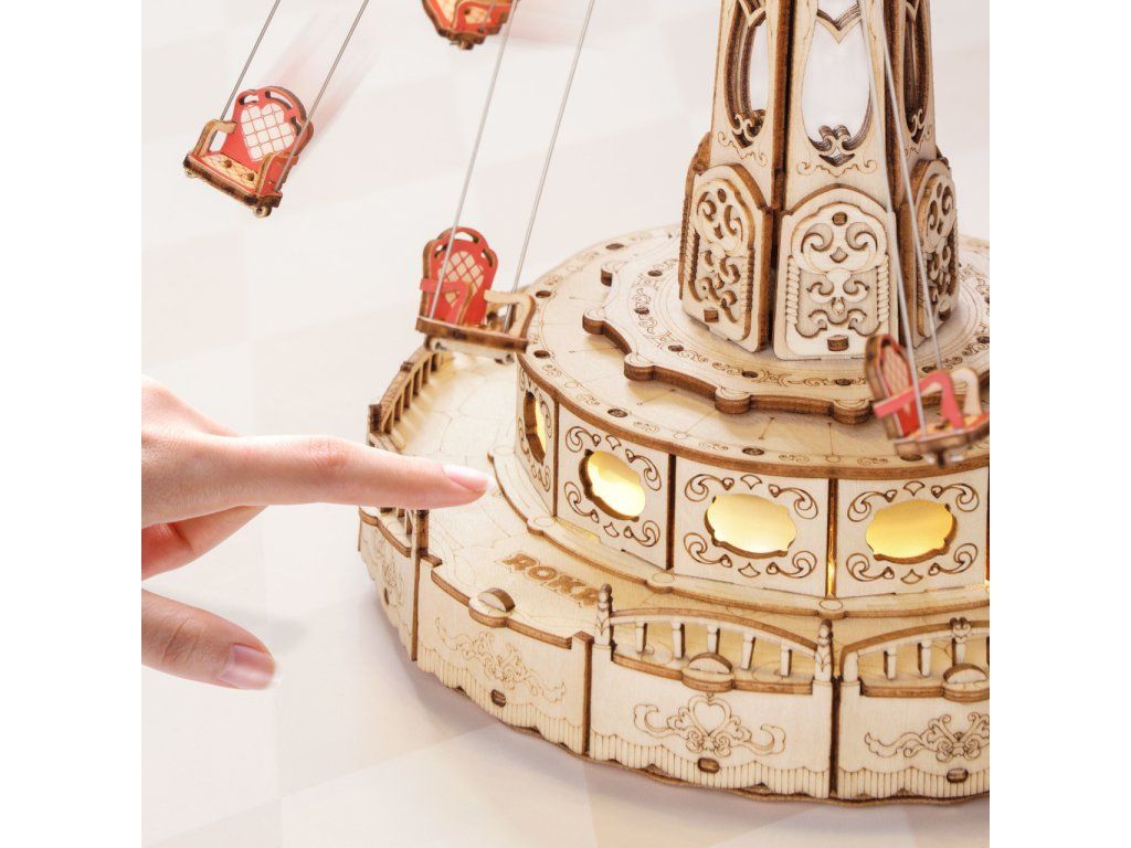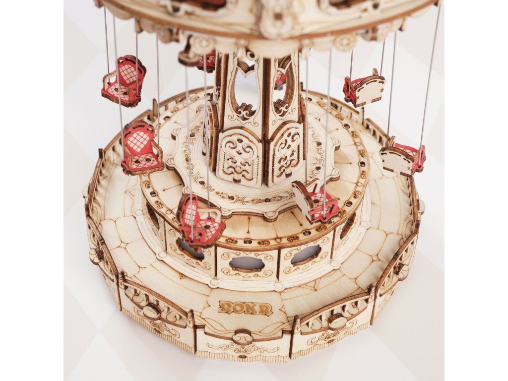 RoboTime 3D drevená skladačka hracej skrinky Retiazkový kolotoč farebný