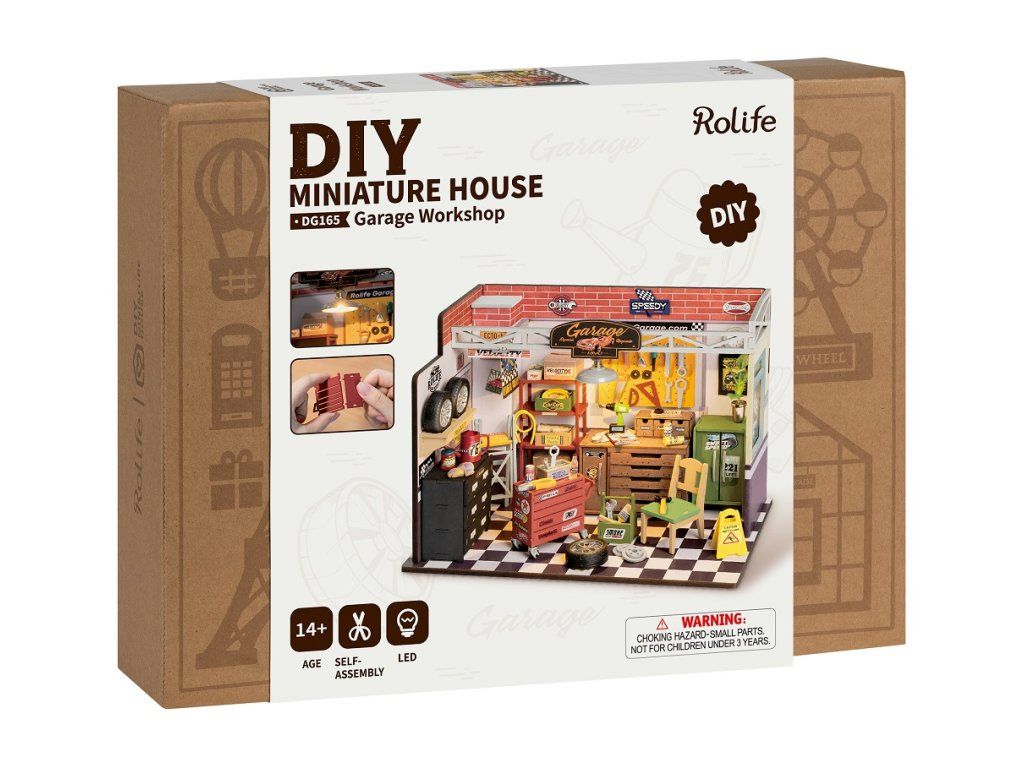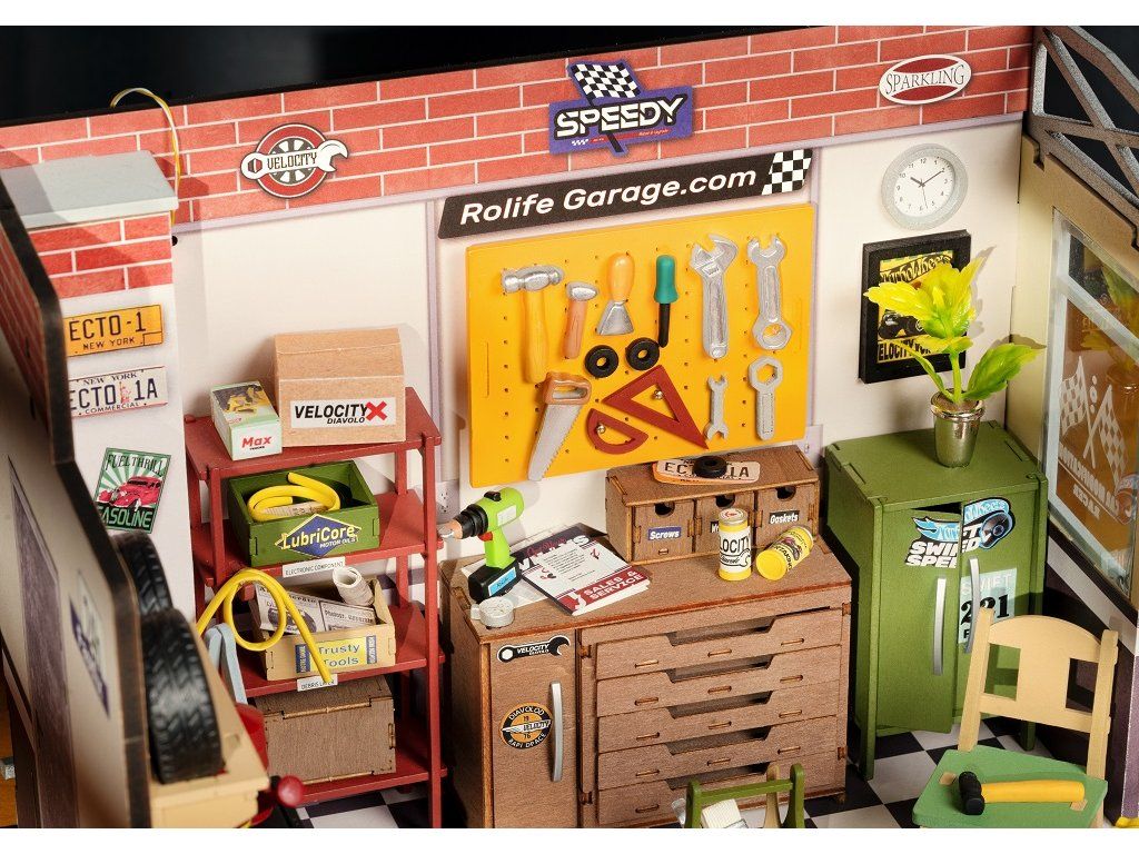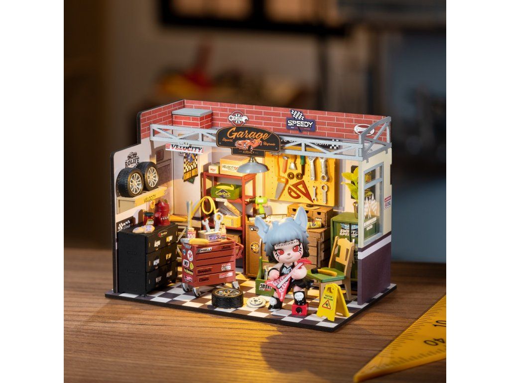 RoboTime 3D drevená skladačka Miniatúra domčeka Garáž
