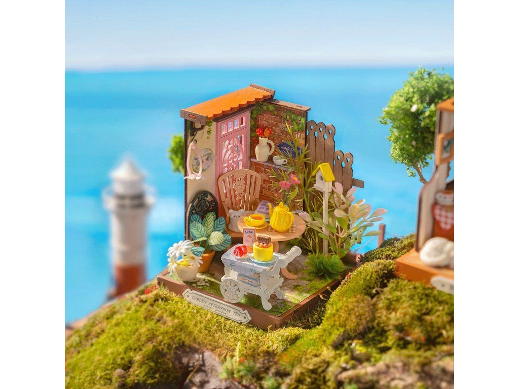 RoboTime 3D drevená skladačka Miniatúra domčeka Záhradný čajový kútik