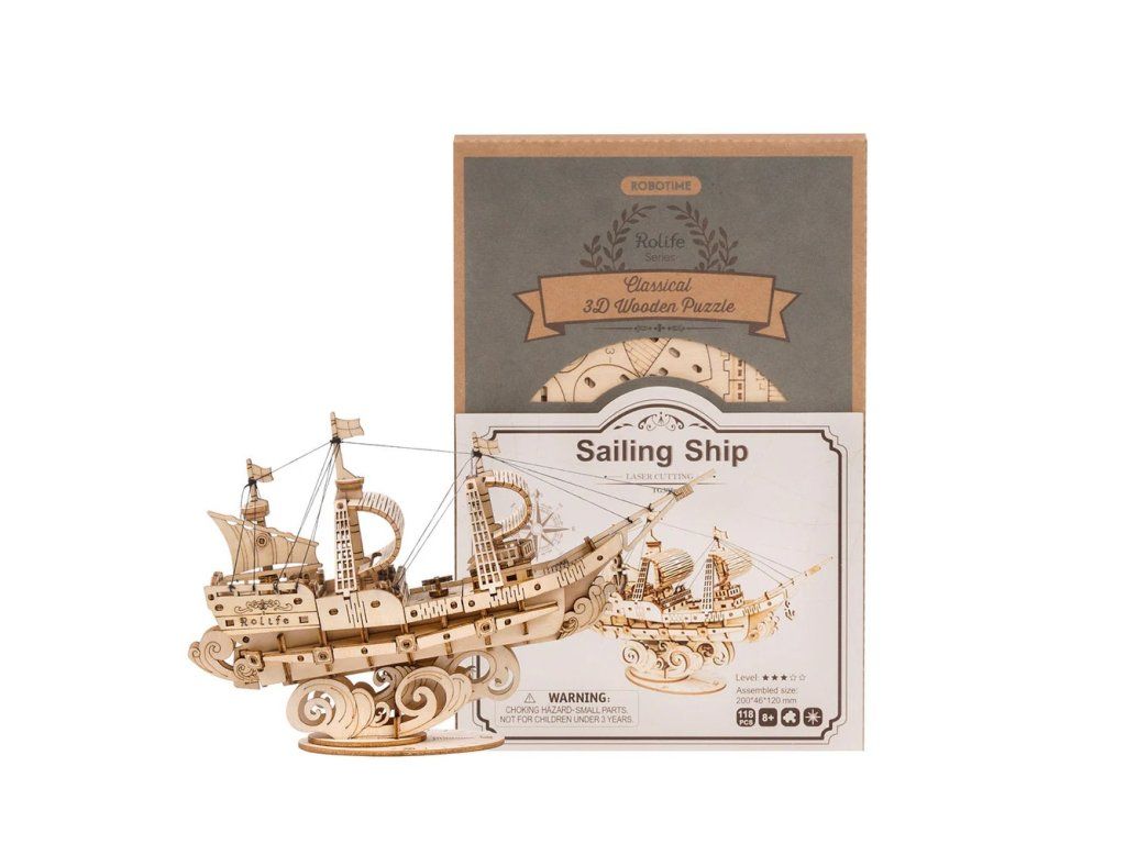 RoboTime 3D drevená skladačka Vojenská plachetnica