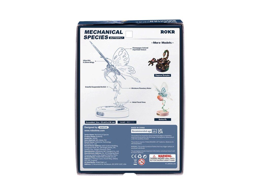 RoboTime 3D mechanická skladačka Modrý motýľ