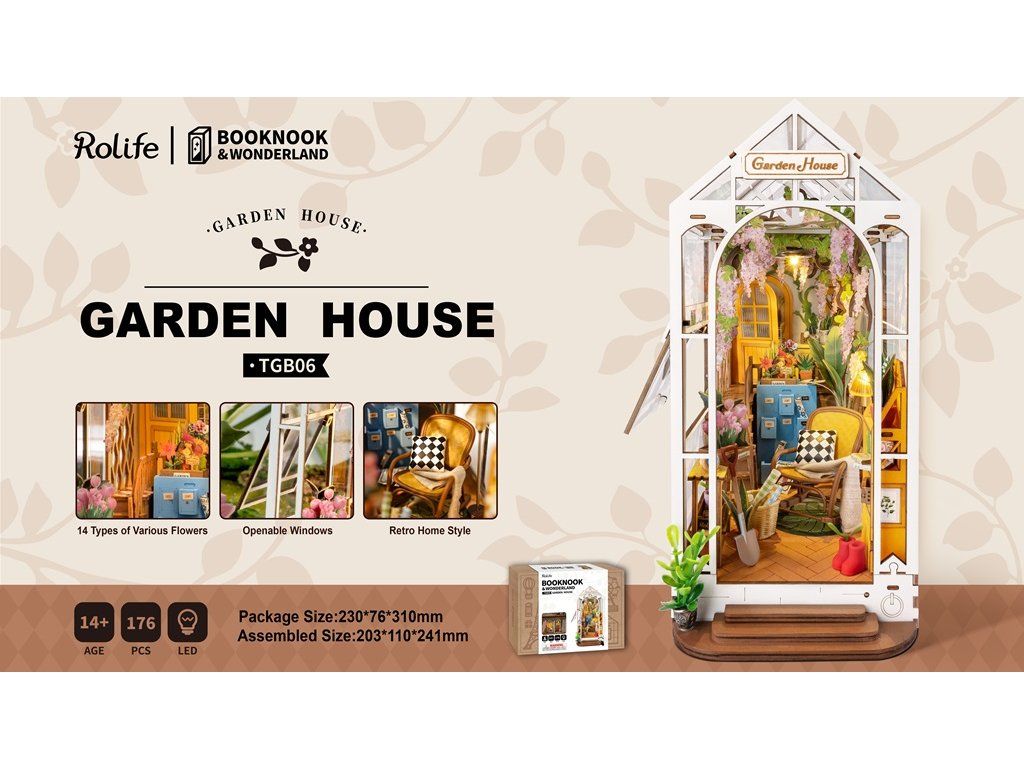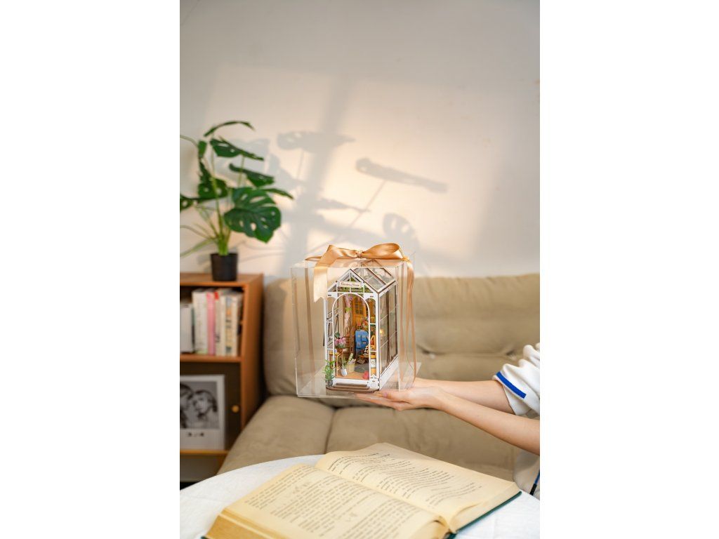 RoboTime 3D skladačka Zarážka na knihy Miniatúra domčeka Skleník