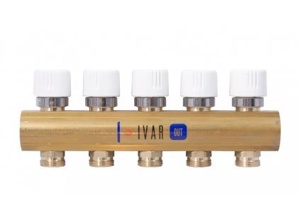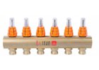 Rozdeľovač - osadený regulačnými prietokomermi - 5/4"xEK; 12cestný; mosadz