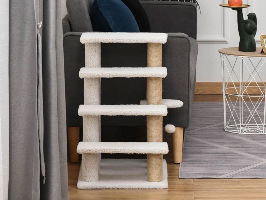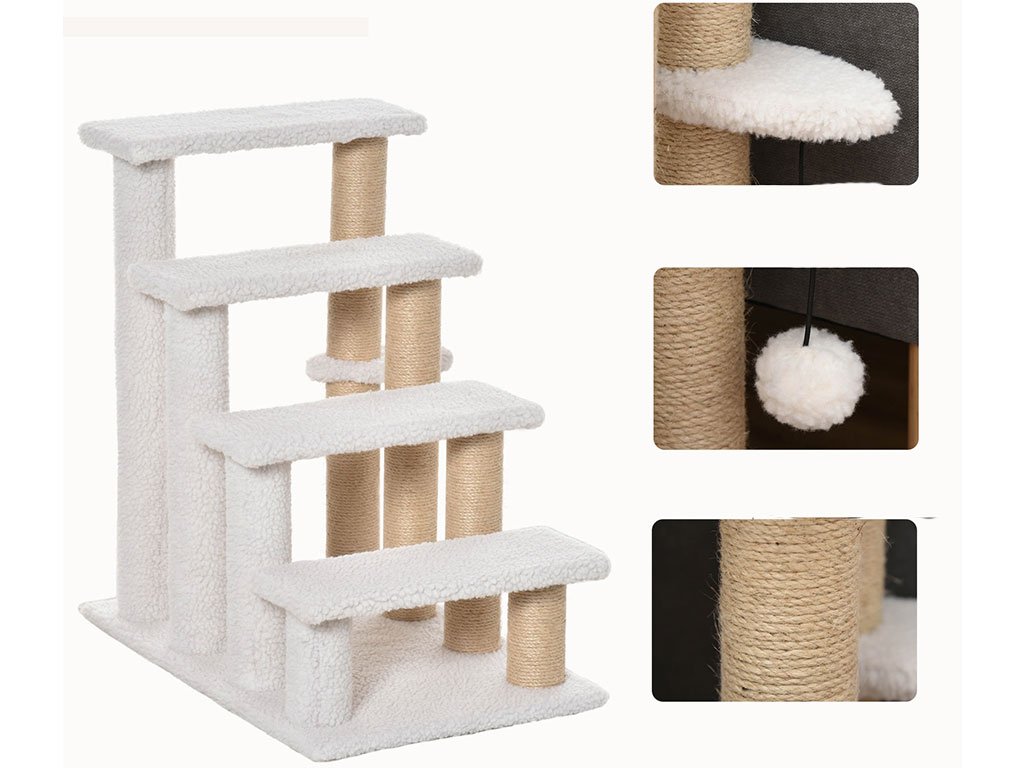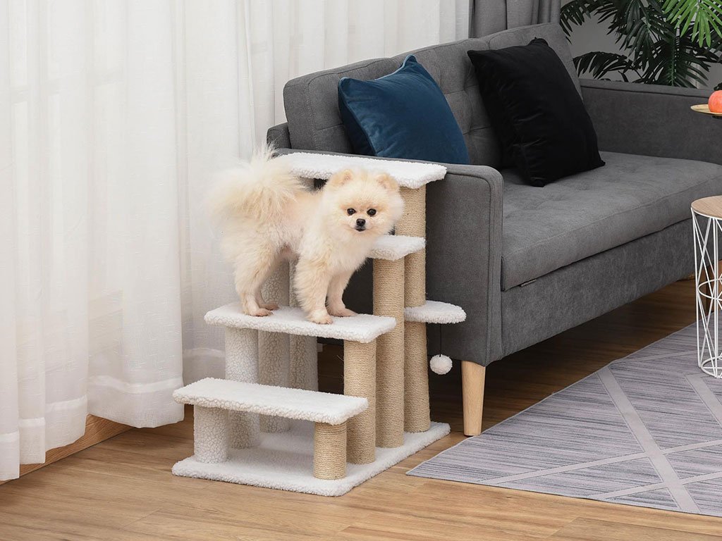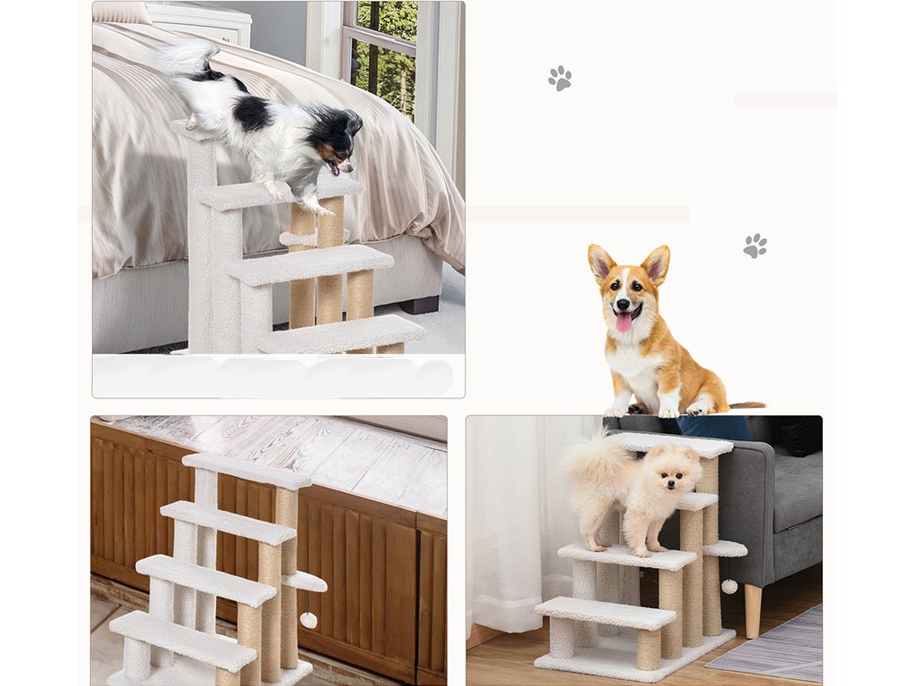 Schodíky pre psy a mačky PAWHUT D06-093, biele, 60x40x64 cm