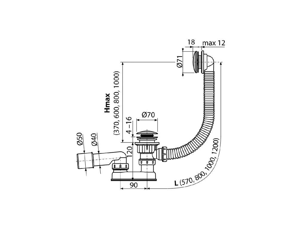 Sifón vaňový CLICK/CLACK, s vyberateľnou výpusťou