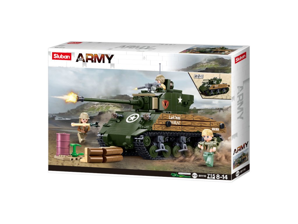 Sluban Army WW2 M38-B1110 Bojový tank M4A3 Sherman