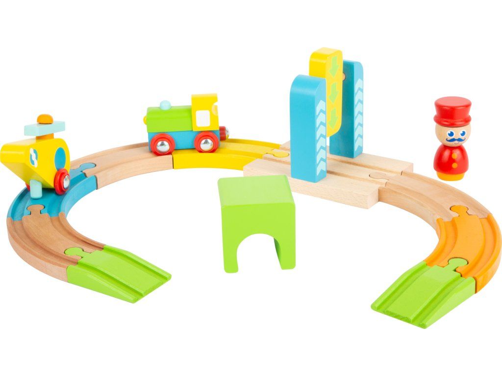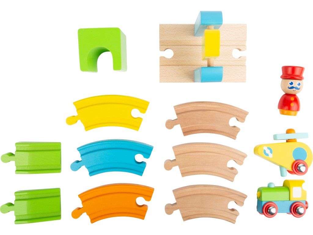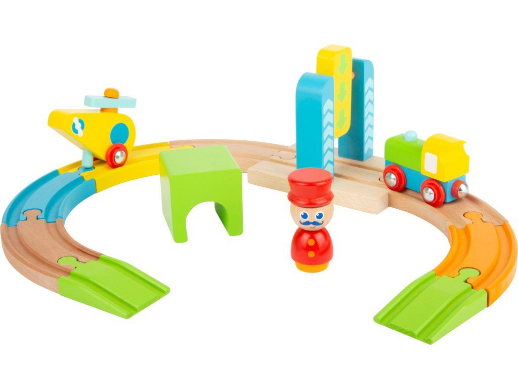 small foot Drevená malá vláčikodráha s vrtuľníkom