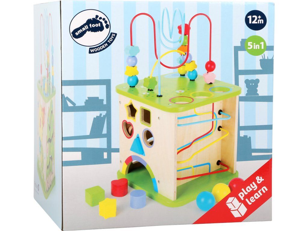 small foot Drevená vkladacia motorická kocka s labyrintom 5v1