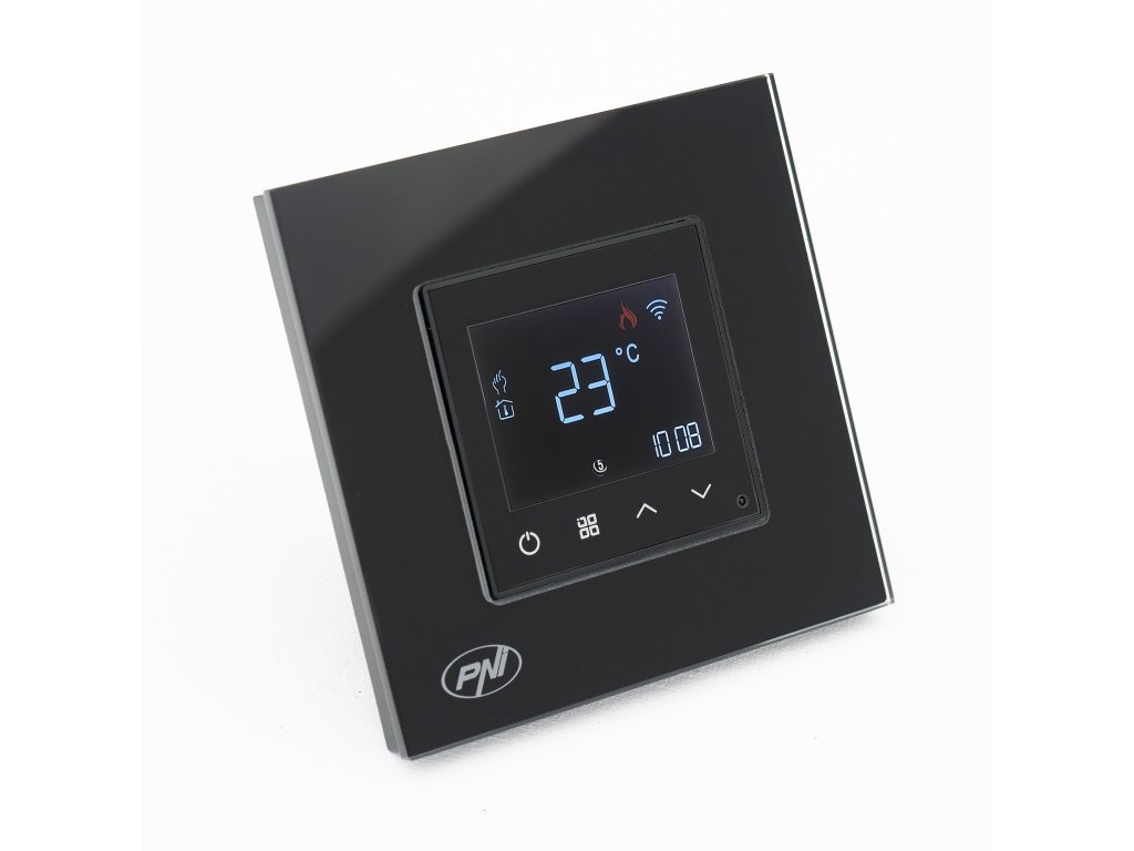 Smart termostat PNI CT25B WiFi pre plynovú výhrevňu, montáž pod omietku, 16A, ovládanie z aplikácie Tuya Smart, denné programovanie, manuálny/automatický režim, čierna farba