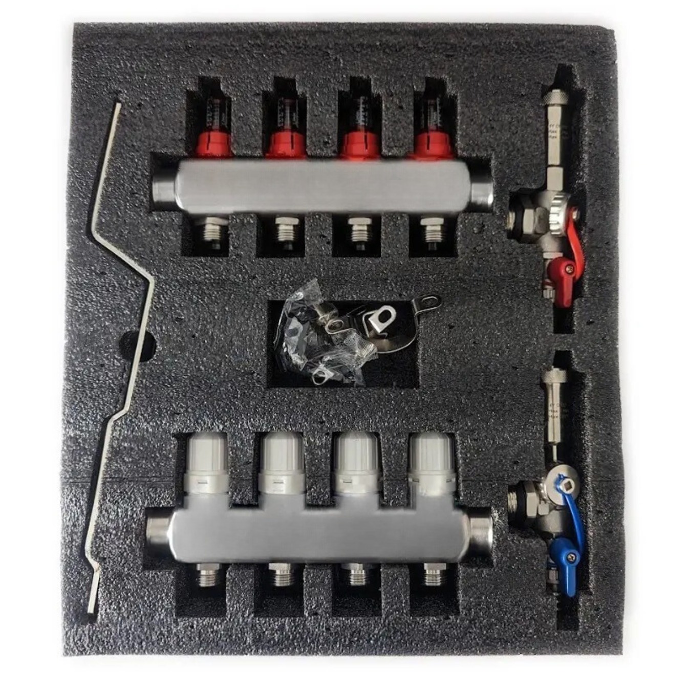 - the appropriate number of thermoregulating valves with manual control with the possibility of installing electrothermal heads (servo), thread