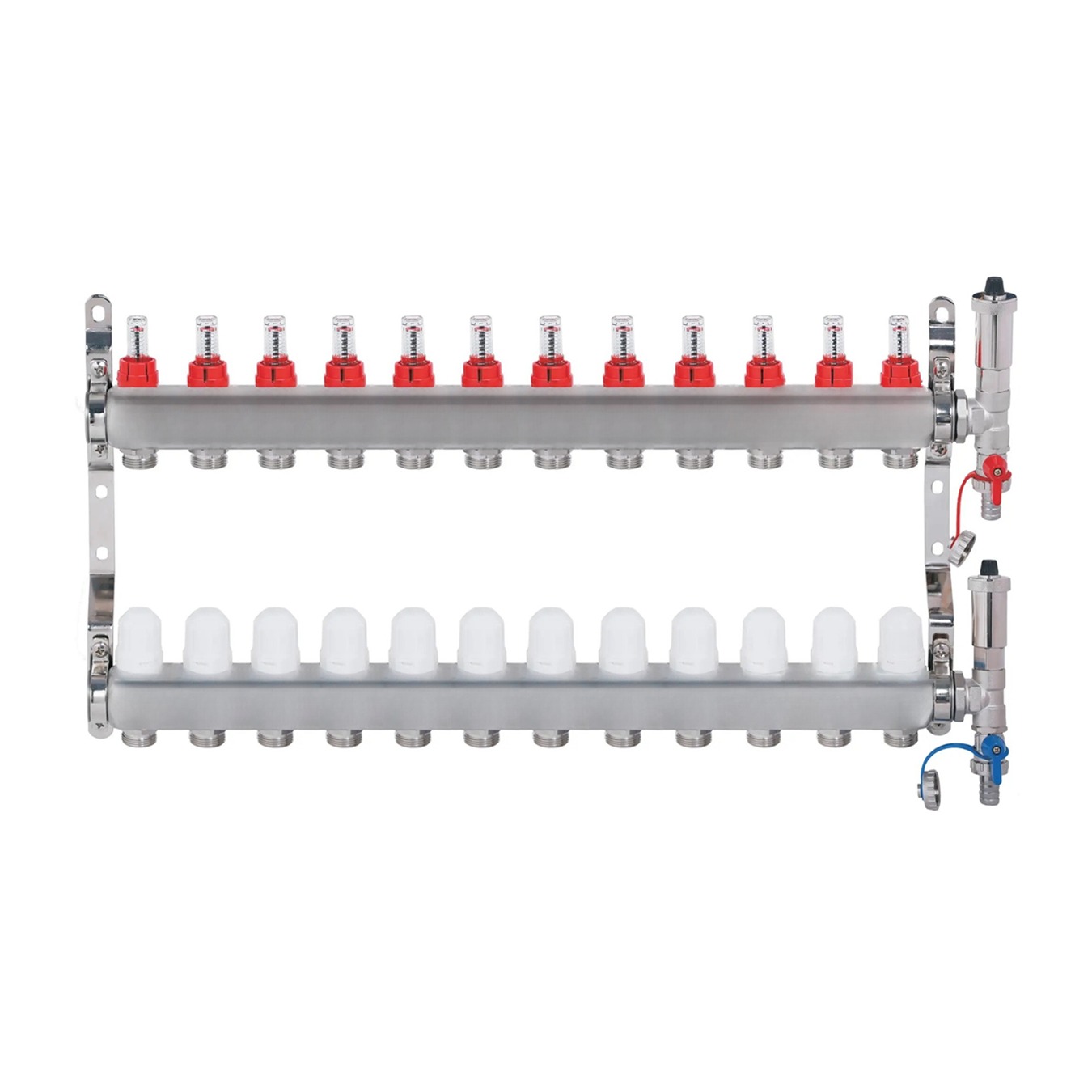 Square stainless steel distributor - 12 - road - flow meters, thermostat. valves, automatic. delivery valves, connection 1" thread