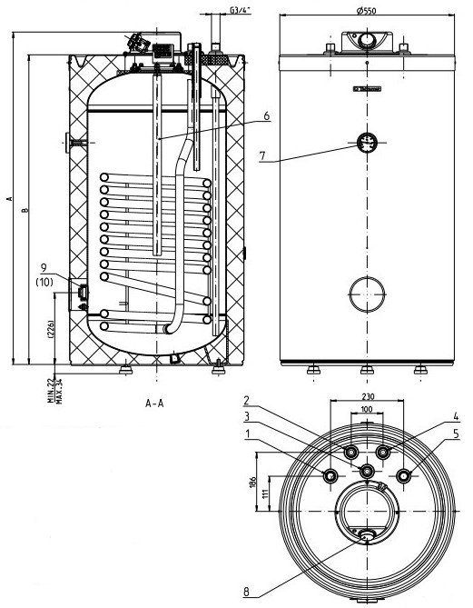 - stacionárny ohrievač vody s nepriamym ohrevom - horný vývod