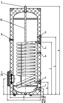 - stacionárny ohrievač vody s nepriamym ohrevom - bočný vývod