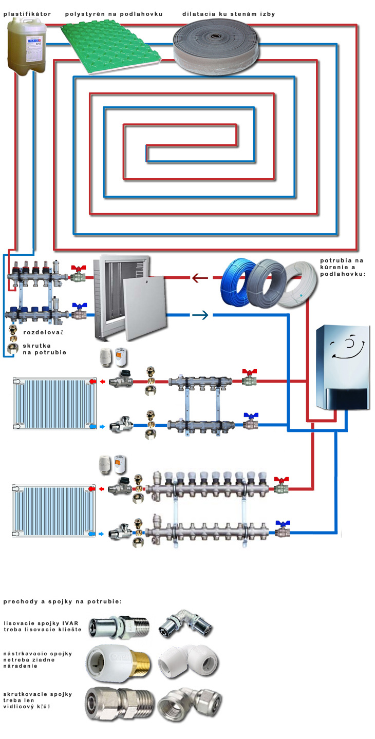 dobry deň. chcem sa opytať? či by sa dalo aj tak zapojiť na jednu izbu - moja shcema: kotol-potrubia na kurenie a podlahovku-polystyren na podlahovku-plavajuca podlaha ( je nutne použiť rozdeľovač a radiator)