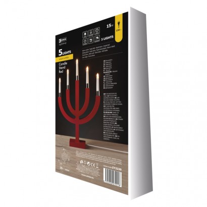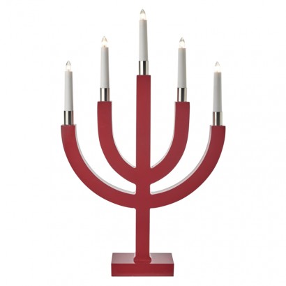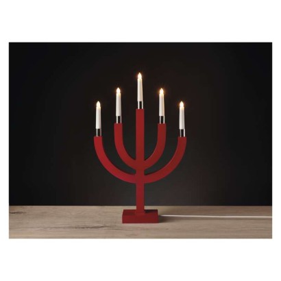 Svietnik na 5× žiarovku E10 drevený červený, päťram.,35×67cm