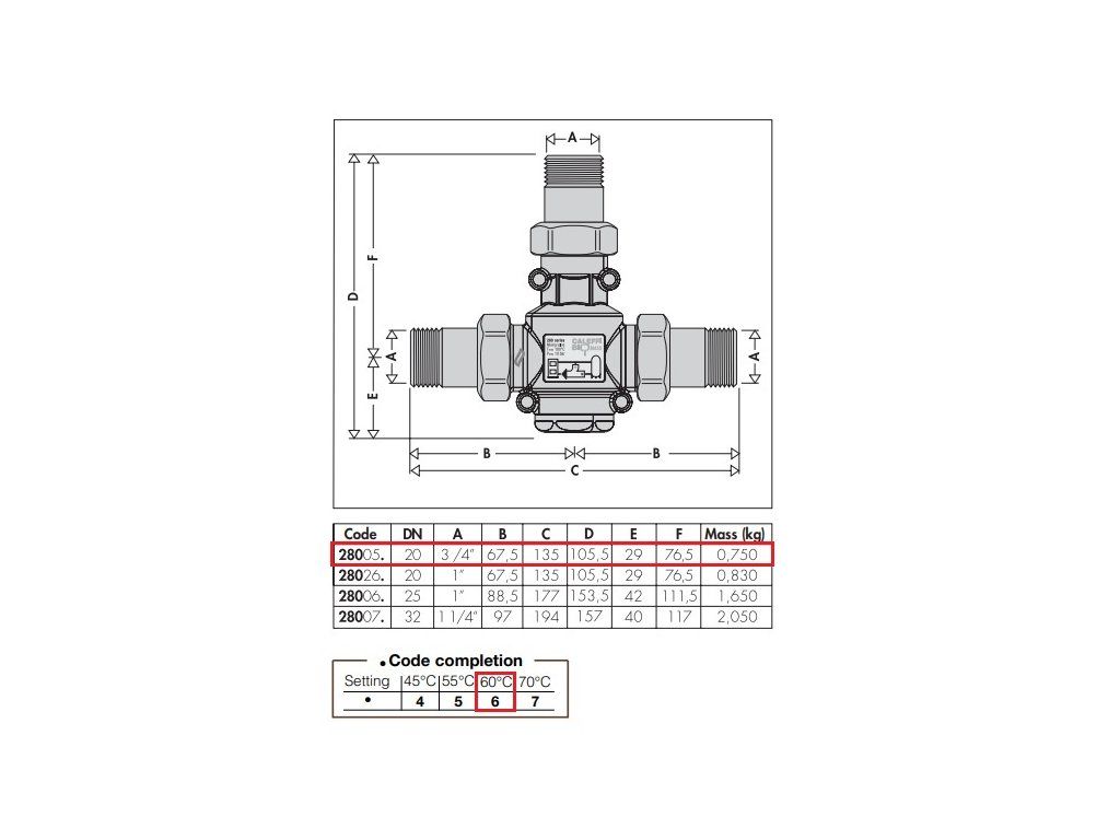 Termoregulačný ventil DN20, 3/4", 55°C s termostatickým ovládaním teploty média na spiatočke do kotla na pevné palivá