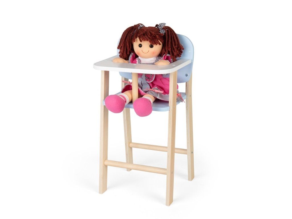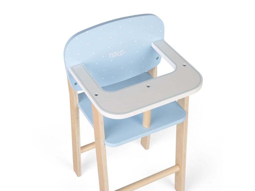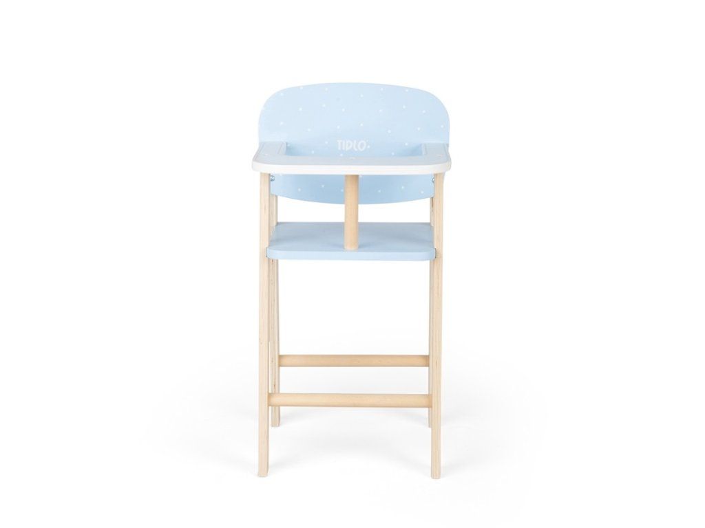 Tidlo Drevená stolička na kŕmenie bábik modrá