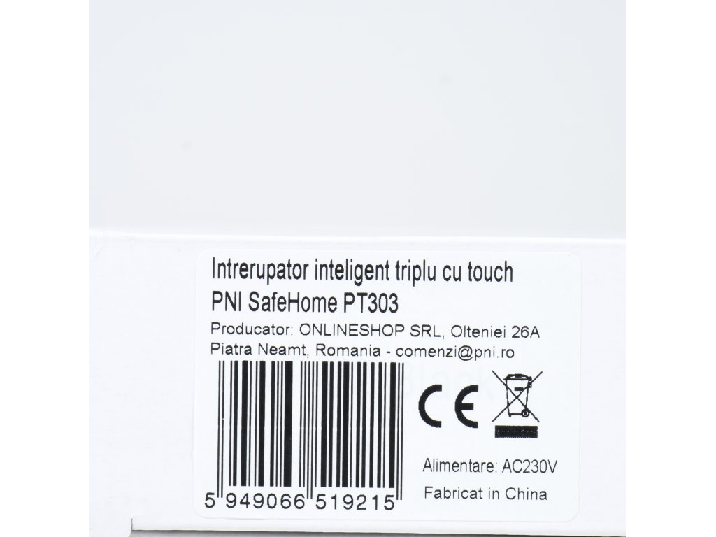 Trojitý inteligentný prepínač s PNI SafeHome PT303 WiFi touch, 10A, ovládanie internetu, mobilná aplikácia Tuya Smart, integrácia do scenárov a inteligentná automatizácia s ďalšími kompatibilnými prod