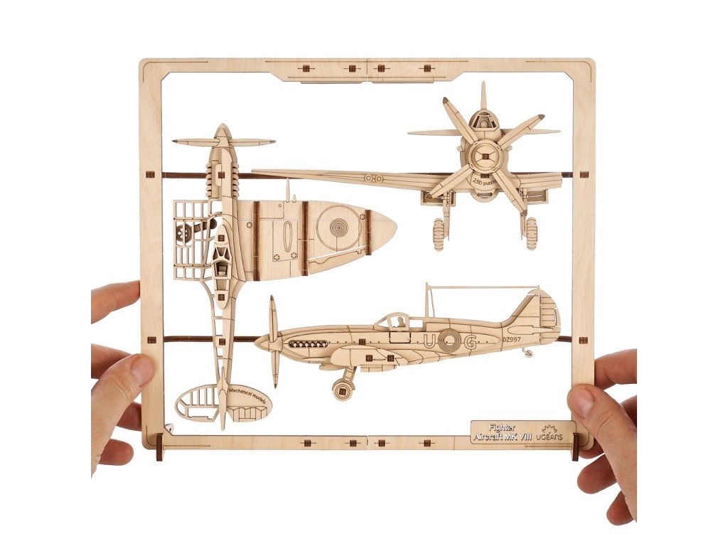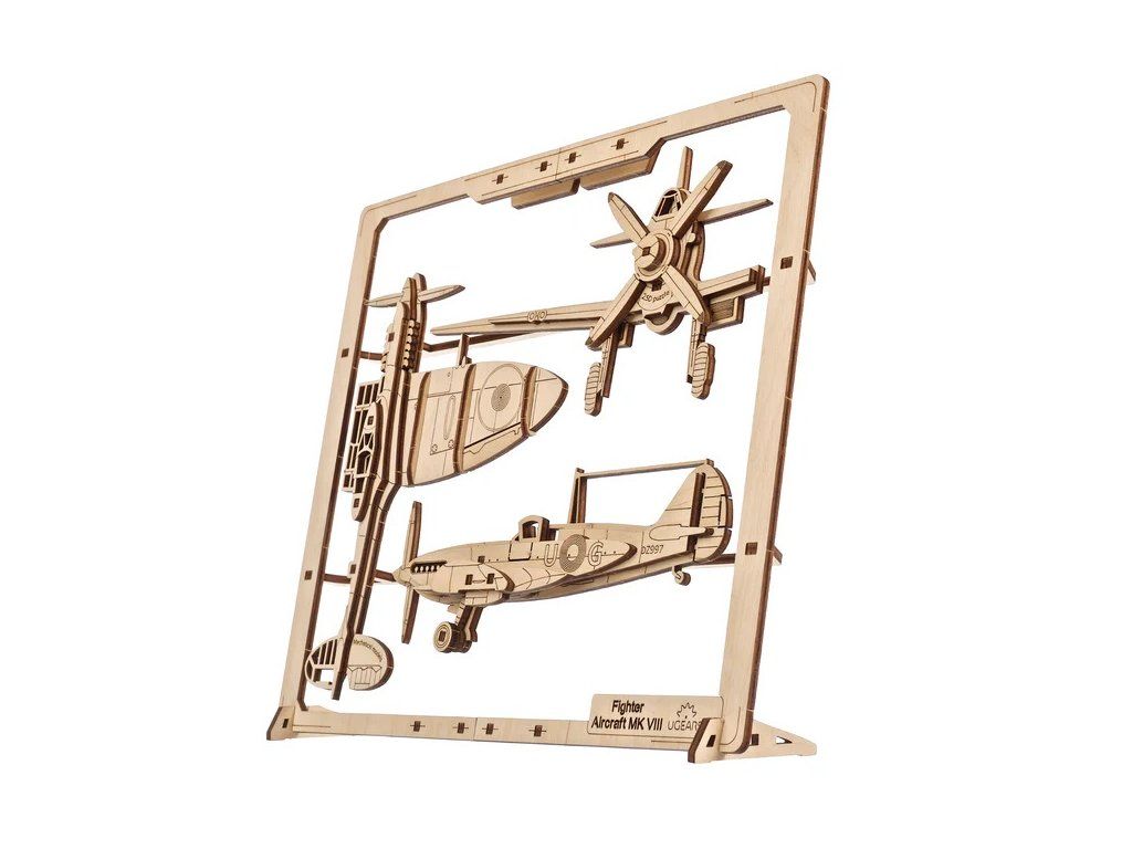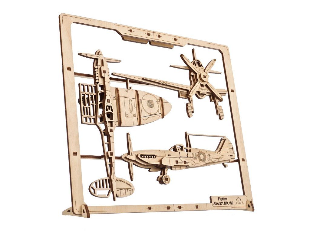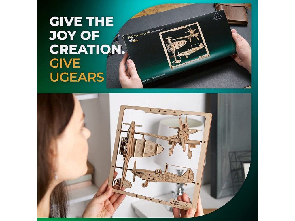 Ugears 2,5D drevené mechanické puzzle Stíhacie lietadlo
