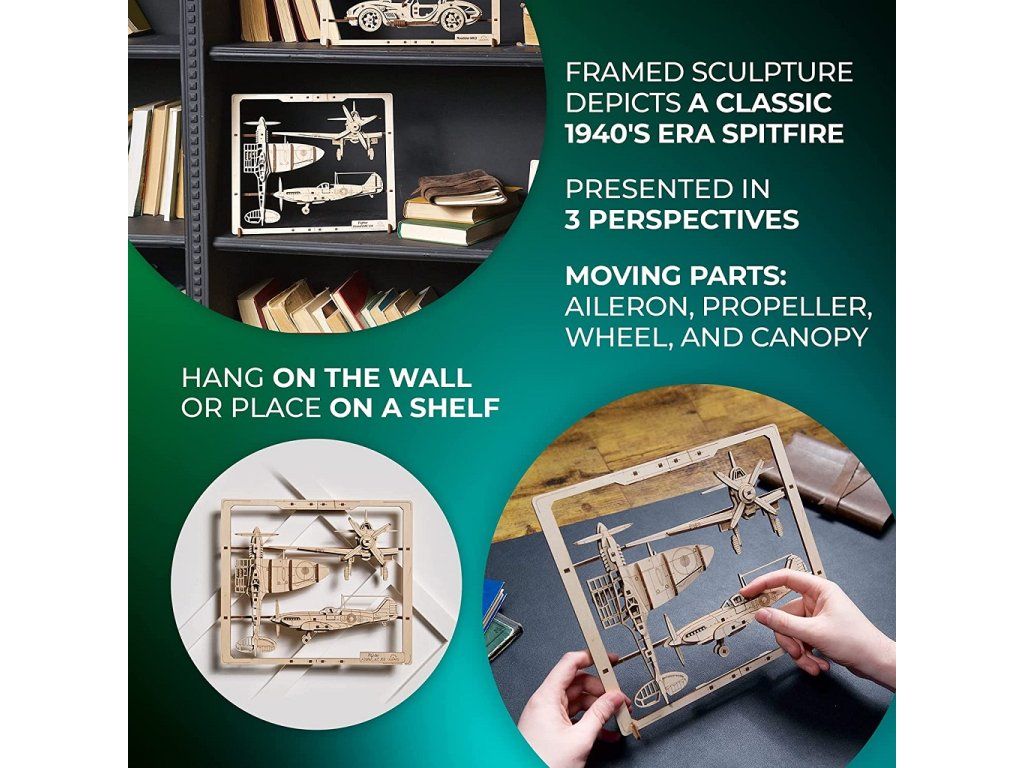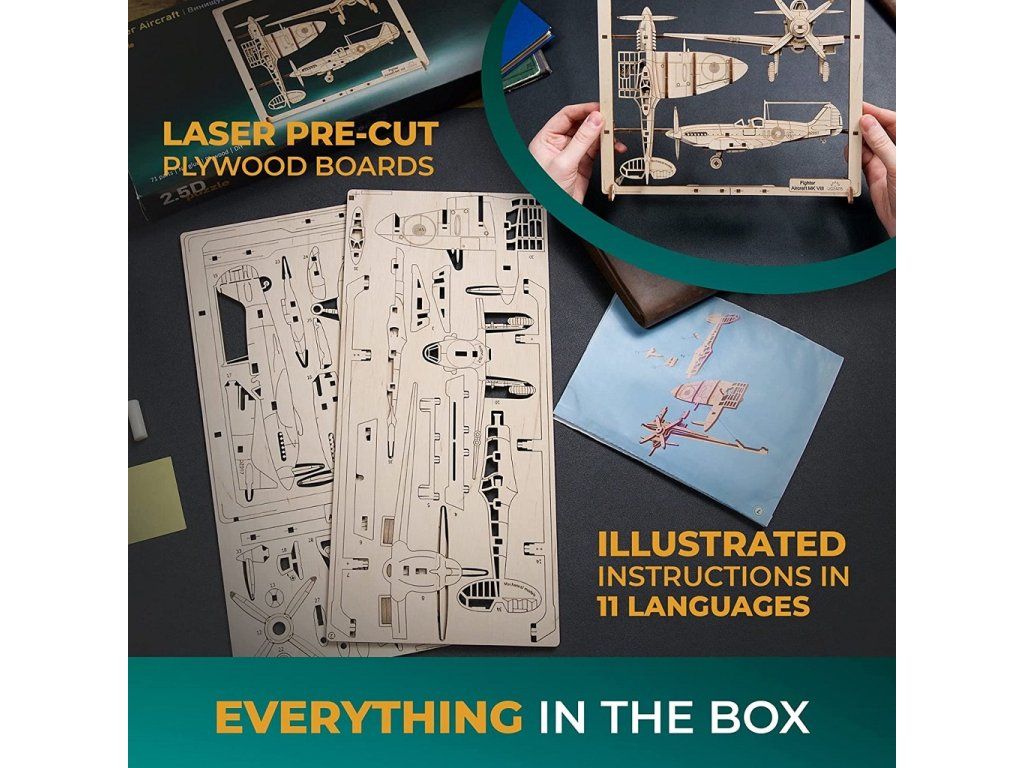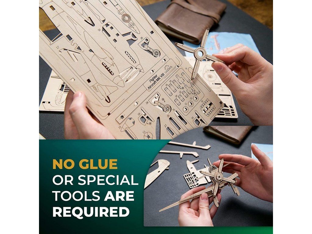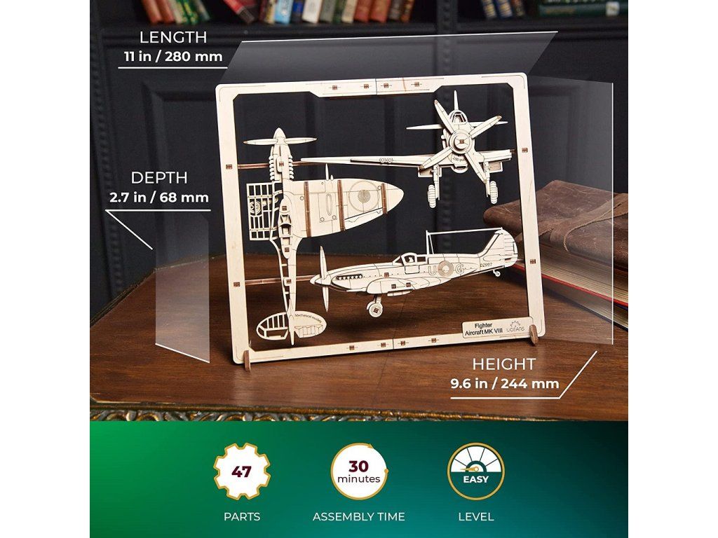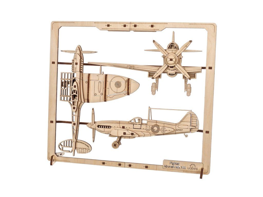 Ugears 2,5D drevené mechanické puzzle Stíhacie lietadlo
