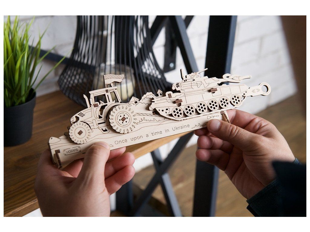 Ugears 3D drevené mechanické puzzle Brave UA Tractor