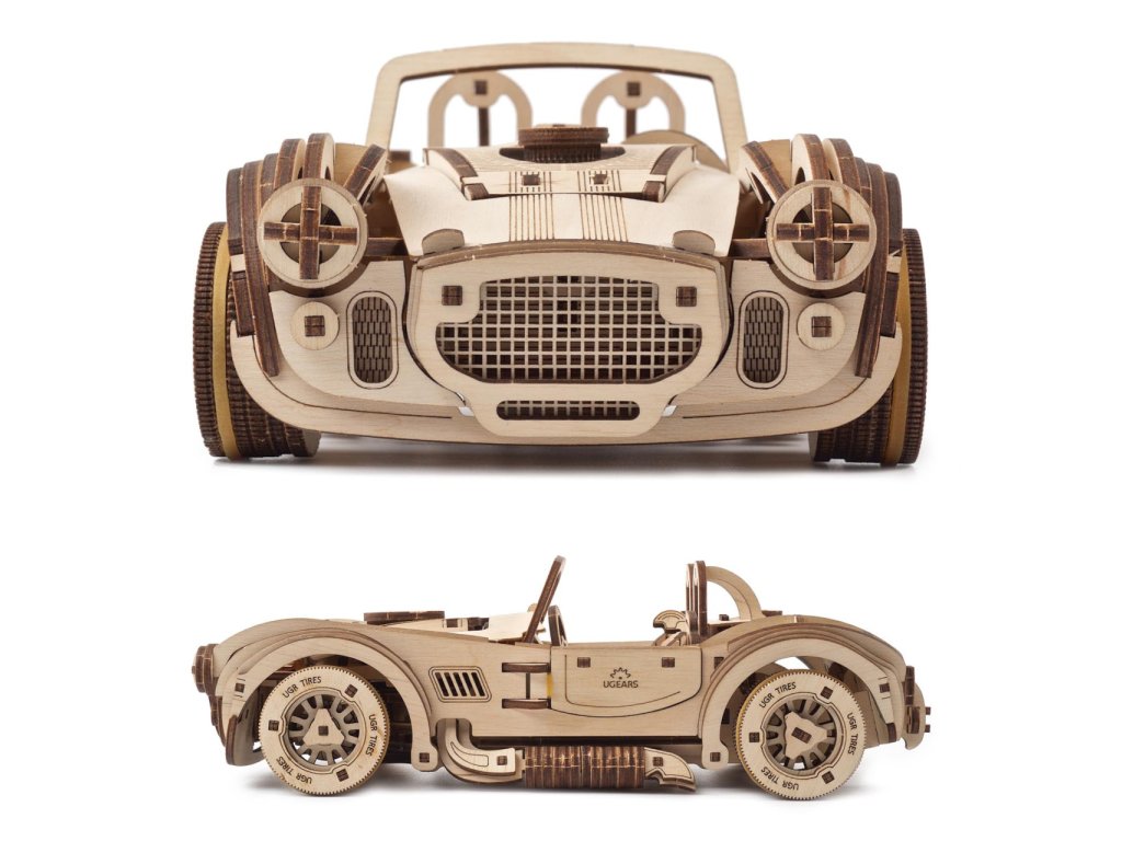 Ugears 3D drevené mechanické puzzle Driftujúci závodiak Cobra