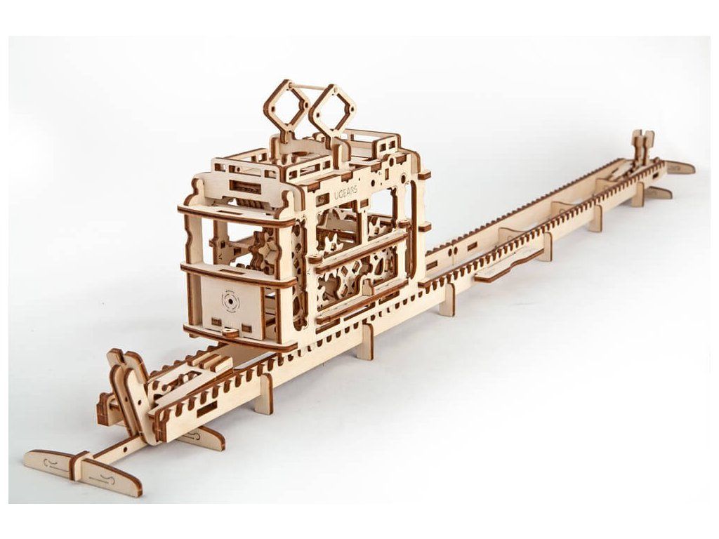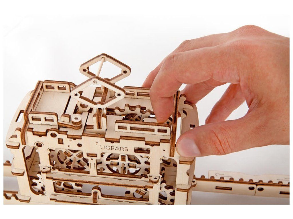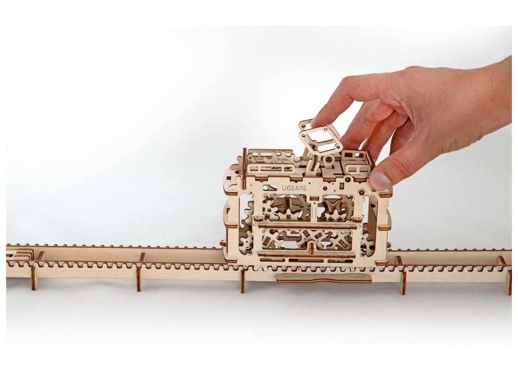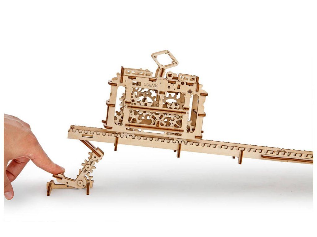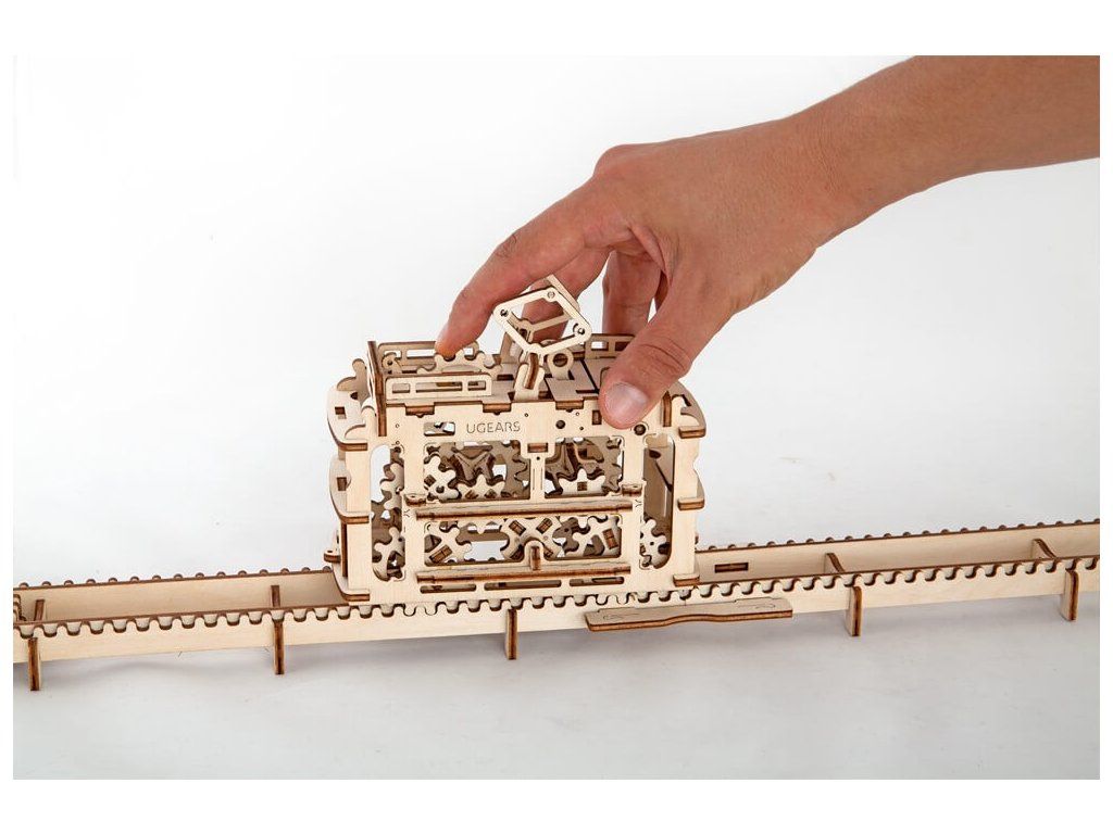 Ugears 3D drevené mechanické puzzle Kabínková lanovka s traťou