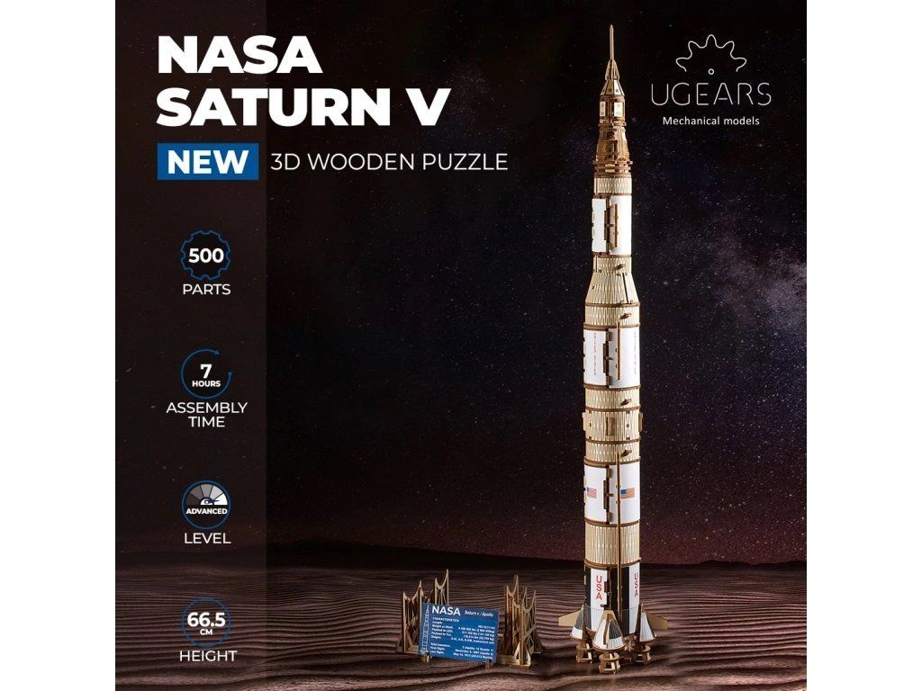 Ugears 3D drevené mechanické puzzle NASA, Saturn V
