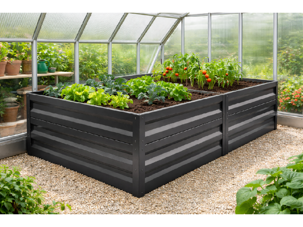 Vyvýšený záhon LEGI 1 × 2 m, pozinkovaný oceľový rám, výška 40 cm, antracit