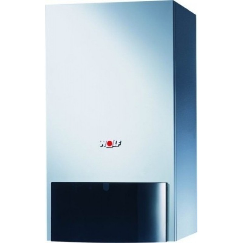 The Wolf CGB-20 gas-fired wall-hung condensing boiler is designed for low-temperature heating systems and potable water heating, with a supply temperature of up to 90 °C and a permissible operating pressure of 0.3 MPa. Modulated burner with extremely low pollutant levels and low noise. High performance heat exchanger made of silicon alloy aluminium alloy with a unique design allowing easy and quick maintenance after the exchanger has been removed from the boiler under full water pressure in the system without the need to drain and fill the water and vent the system. Heat exchanger optionally with electrochemically coated surface to obtain higher corrosion resistance, better condensate drainage and self-cleaning of the exchanger surface meaning higher boiler operating efficiency as well as easier and faster cleaning of the exchanger during boiler maintenance. 3-stage boiler pump for maximum efficiency in condensing (standardized utilization rate up to 110%).