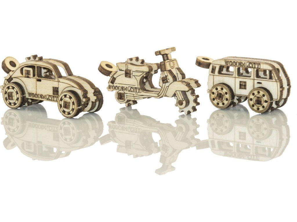 WOODEN CITY 3D puzzle mini sada Widgets: Historická vozidla 35 dílků