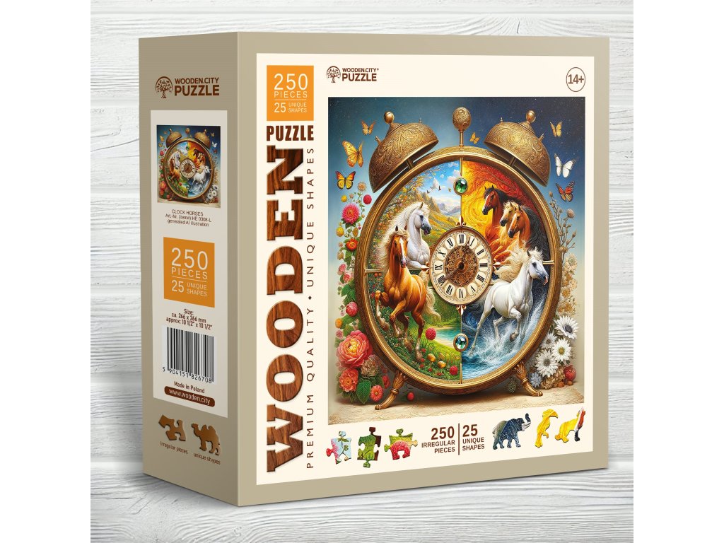 WOODEN CITY Dřevěné puzzle Koňské hodiny 250 dílků