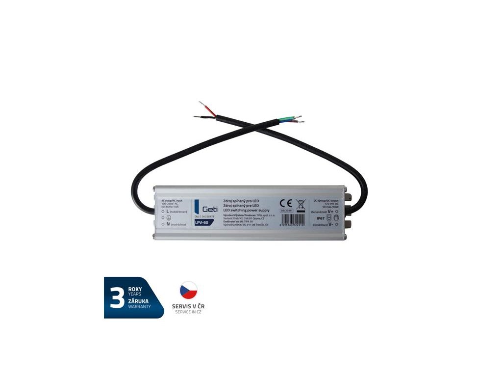 Zdroj spínaný pre LED 12V/ 60W GETI LPV-60