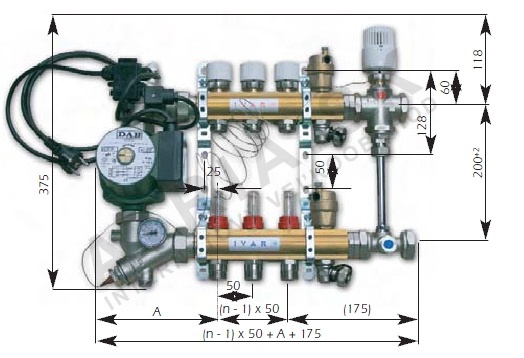 Vypínanie obehového čerpadla nie je súčasťou rozdeľovača, je možné ho riešiť nadradenou reguláciou alebo ovládacím termostatom pre obehové čerpadlá IVAR.AC 614 E.