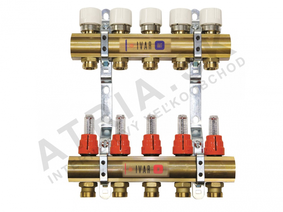 - zostava obsahuje: rozdeľovač s regulačnými prietokomermi, zberač s uzatváracími ventilmi, upevňovacie konzoly