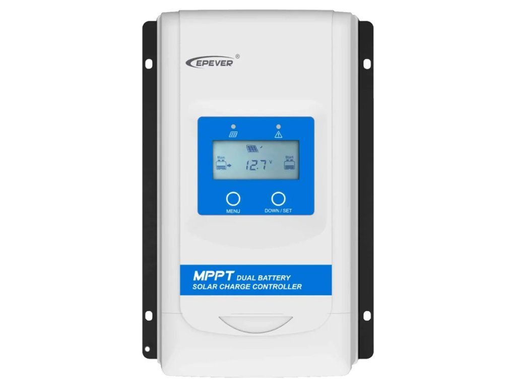 MPPT regulátor nabíjení DuoRacer je určen k nabíjení dvou baterií – palubní i startovací (znázorněných níže jako BATT1 a BATT2) v solárním systému. Tento regulátor podporuje několik typů hlavních baterií (BATT1), včetně uzavřených, gelových, zaplavených, LiFePO4 a Li-NiCoMn baterií, které jsou vhodné pro RV, karavany, lodě atd. Zařízení automaticky rozpozná napětí systému baterie startéru (BATT2) a po splnění podmínek se baterie dobije.