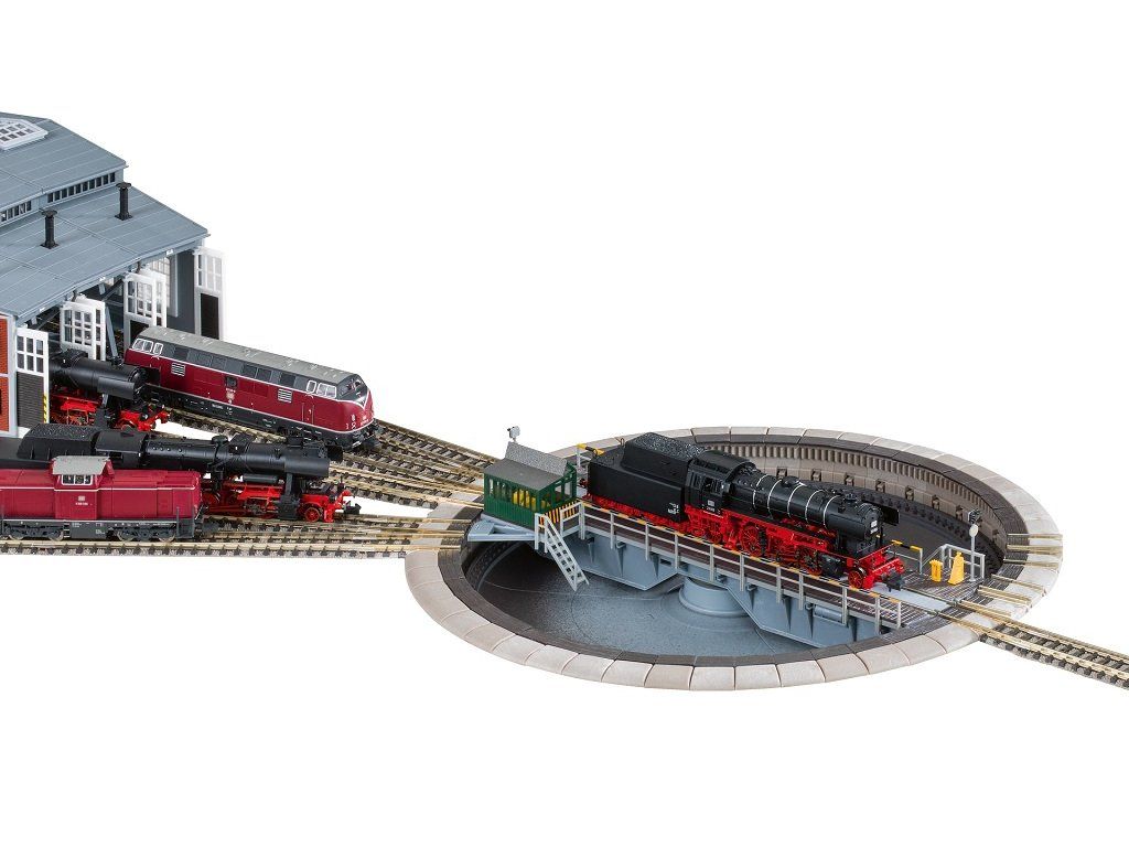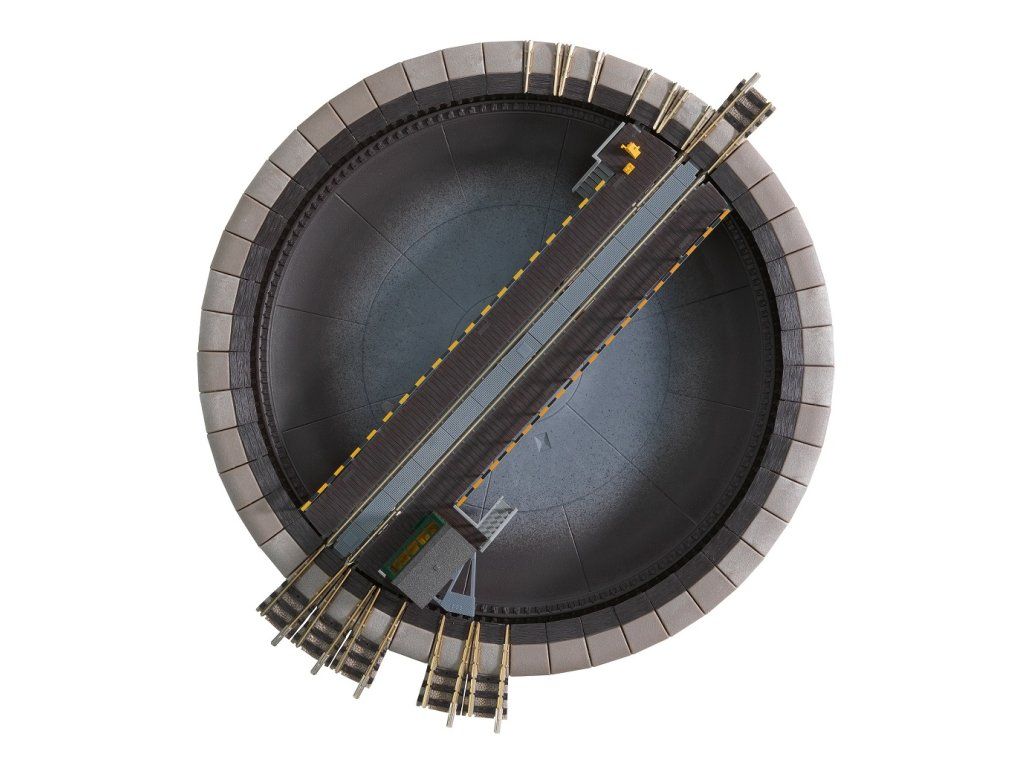 Komfortná elektrická točňa v mierke N (1:160) s individuálne prepínateľnými výjazdmi z koľají je určená pre realistickú prevádzku v lokomotívnych depách a remízach. Model je vybavený elektrickým pohonom a ovláda sa pomocou ovládacieho prepínača. Dĺžka otočného mosta (kobylky) je 183 mm, čo zodpovedá točniam používaným v mierke N a umožňuje otáčanie bežných lokomotív tohto merítka. Točňa je navrhnutá v prototypovom prevedení točnovej jamy a ponúka veľmi realistické spracovanie všetkých dôležitých detailov. Základná sada obsahuje 6 nájazdových koľají a 4 slepé vlečky. Nájazdové koľaje je možné ľubovoľne preskupovať v krokoch po 7,5° a pomocou rozširovacej sady je možné rozšíriť točňu až na 48 koľajových výjazdov. Točňa využíva inteligentný „mysliaci“ systém napájania, kedy je prevádzkový prúd privádzaný cez otočný most. Ovládací prepínač (6910) zaistí, že napätie je privedené iba na aktuálne zvolený výjazd, zatiaľ čo všetky ostatné koľaje zostávajú bez prúdu. Vďaka tomu je možné lokomotívy bezpečne odstavovať bez napätia a prevádzka v depe je prehľadná a realistická bez zložitej kabeláže. Špecifikácia: mierka N (1:160)dĺžka 183 mmvýška profilu 2,1 mm Hlavné vlastnosti: elektrická točňa s individuálne prepínateľnými výstupmiovládanie prepínačom6 nájazdových koľají a 4 slepé vlečkymožnosť rozšírenia až na 48 koľajových spojení Dokumentácia: návod na obsluhu (DE, EN, F, IT, NL)zoznam náhradných dielov (DE, EN)Dodatočné parametre