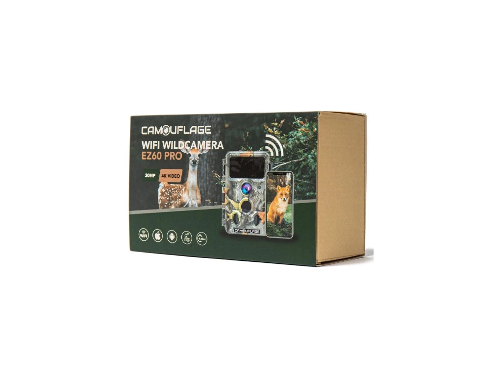 Zistite, aké divé zvieratá sa potulujú na vašom pozemku. Fotopasca Camouflage EZ60 Wifi/bluetooth ich zachytí. Kamera s 8MP snímačom vytvorí fotografie v rozlíšení až 32 MP. Zároveň dokáže natočiť video v 4K kvalite. Na veľmi detailnom a ostrom zázname si prezriete, či sa okolo fotopasce pohybovali srnka, zajac, líška alebo len pes od susedov.