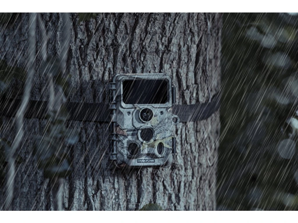 Fotopasca je vybavená krytím IP66, ktoré jej zaisťuje vodeodolnosť. Odolá teda dažďu a nadmernej vlhkosti. Nemusíte teda strážiť, aké počasie vonku panuje. Fotopascu môžete nechať na mieste, aj keď práve prší.