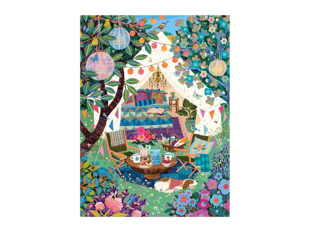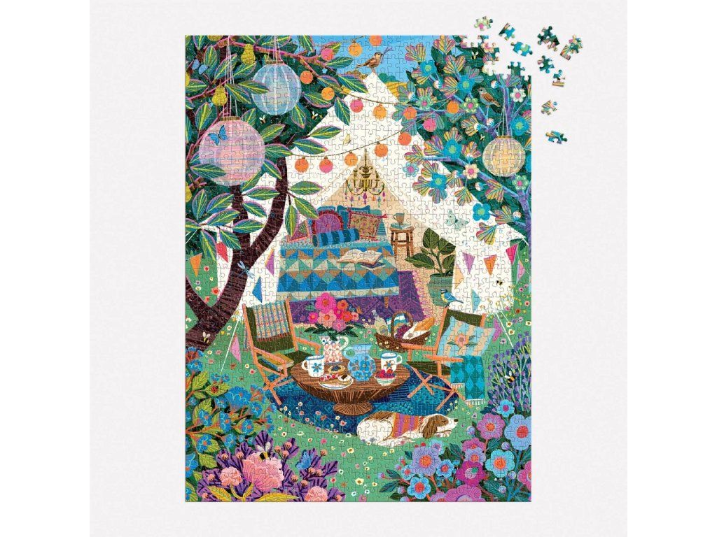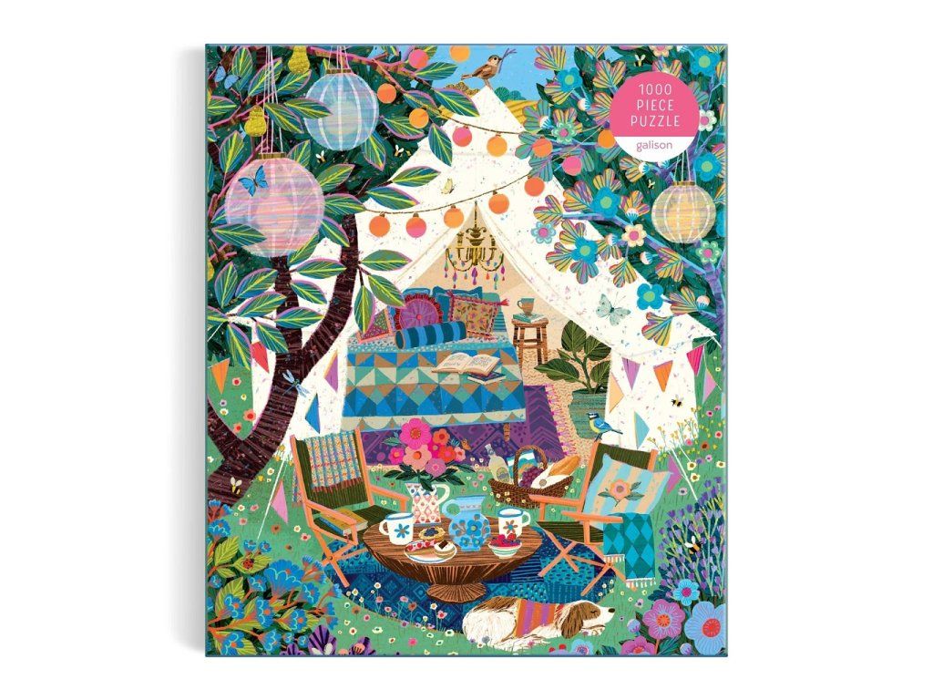 Uniknite do kúzelného sveta prírody s puzzle Kvitnúci únik od značky Galison, vytvoreného podľa ilustrácie umelkyne Victoria Ball.Táto detailná ilustrácia zachytáva idylické vonkajšie útočisko v štýle glampingu. Dominantou scény je elegantne zariadený stan, doplnený jemným osvetlením a bohato vzorovanými textíliami. Okolie ožíva vonkajším čajovým posedením s kvetinovou výzdobou a množstvom botanických detailov. Celú kompozíciu dopĺňa pokojná atmosféra, ktorú podčiarkuje prítomnosť odpočívajúceho psa a záplava rozkvitnutých kvetov. Puzzle s 1000 dielikmi ponúka príjemnú výzvu a zároveň vás vtiahne do sveta pohody, farieb a prírody. Dieliky sú pevné, odolné a presne do seba zapadnú. Celý produkt je navyše vyrobený zodpovedne: z 90% recyklovaného materiálu (70% pri obale) s certifikáciou FSC® a za použitia netoxických farieb. Hlavné vlastnosti: 1000 dielikov puzzleilustrácie od umelkyne Victoria Ballmotív glampingového útočiska v prírodedetailná scéna so stanom, čajovým posedením a kvetinamibohaté farby a dekoratívne vzorykvalitná tlač a precízne vyrezané dielikyideálny pre relaxáciu aj náročnejšie skladanie Značka a certifikát FSC® (Forest Stewardship Council) zaručuje, že drevo, z ktorého bol výrobok vyrobený, nebolo vyťažené nelegálne a pochádza z lesov obhospodarovaných šetrným či prírode blízkym spôsobom, v ktorom sú dodržiavané prísne environmentálne a sociálne požiadavky. Značka FSC® na výrobku znamená, že svojim nákupom pomáhate chrániť lesy a podporujete šetrné, zodpovedné či prírode blízke hospodárenie, vďaka ktorému sú naše lesy stabilnejšie, zdravšie, majú prirodzenú druhovú skladbu a lepšie odolávajú negatívnym následkom klimatických zmien.Dodatočné parametre