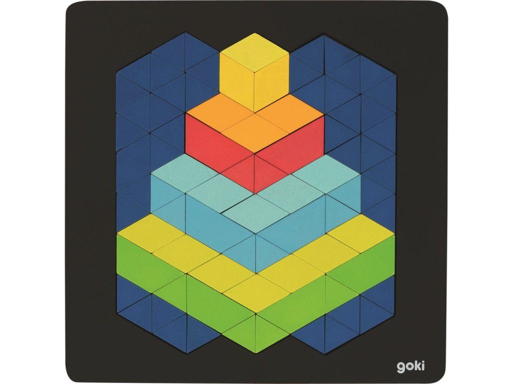 Mozaika s 3D optickým efektem v dřevěném rámečku je malou výzvou pro všechny kreativní děti. Znalost barev a špetka trpělivosti postačí k tomu, aby se podařilo z jednotlivých barevných dílků poskládat celé dílo. Skládat můžete na dřevěný rámeček i mimo něj, podle předlohy nebo vlastní fantazie, rozměr rámečku: 21 x 21 x 0,8 cm, vyrobeno ze dřeva, použité lazurovací barvy na vodní bázi. GOKI patří mezi nejvýznamnější evropské výrobce hraček s vysokou pedagogickou a didaktickou kvalitou. Firma klade důraz na bezpečnost hraček, jejich zdravotní nezávadnost a dbá na obnovitelné zdroje. Dřevo je bráno tam, kde může dorůstat. Používané dřeviny jsou javor, buk, ořech, lípa, jasan, borovice, bříza a gumovník. Barvy a laky pocházejí od menších výrobců. Rozměr složeného puzzle cca 21 x 21Dodatočné parametre