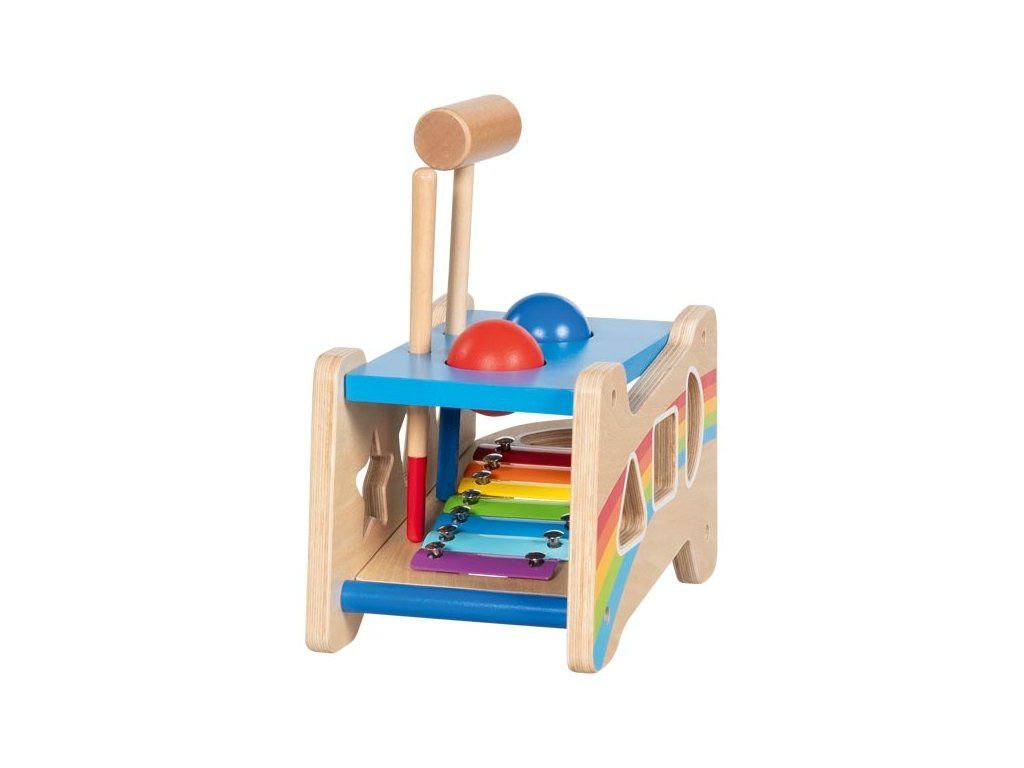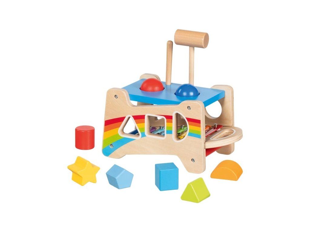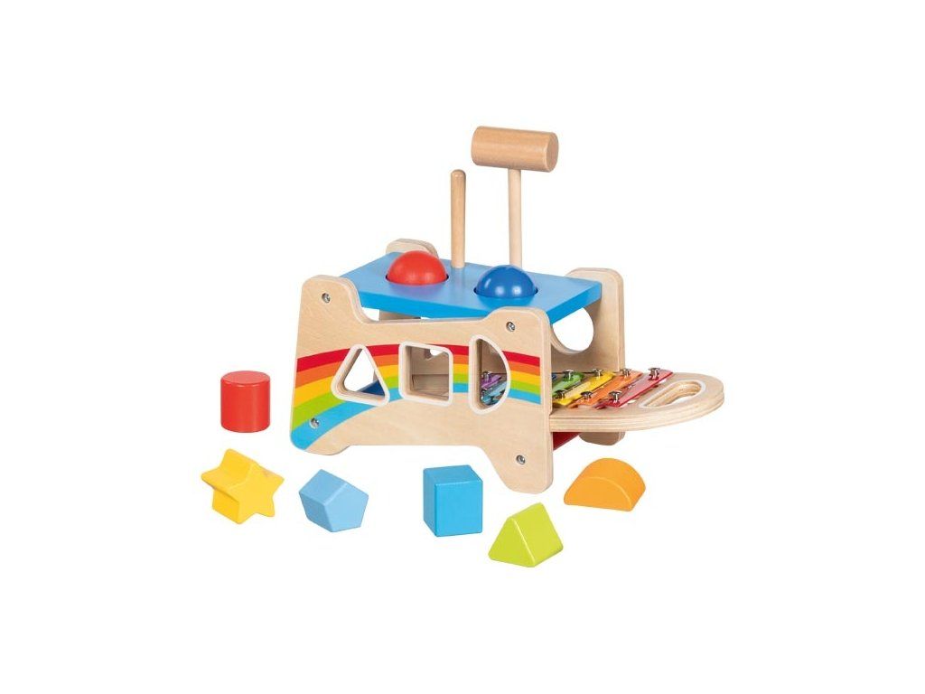 Hra, objavovanie a prvé hudobné zážitky v jednom - to ponúka drevená hračka Goki 3v1. Spája zatĺkačku s kladivkom, vkladačku s farebnými tvarmi a odnímateľný xylofón, ktorý je prakticky zasunutý v tele hračky ako šuplík. Pri zatĺkaní drevených guličiek zažívajú deti ešte viac zábavy – pokiaľ je xylofón zasunutý, každá prepadnutá gulička vydáva veselý tón. Klasická hra sa tak mení na malý hudobný zážitok, ktorý prirodzene rozvíja rytmus aj sluchové vnímanie. Xylofón je možné navyše ľahko vybrať a používať samostatne, takže si deti môžu skúšať svoje prvé melódie. Integrovaná vkladačka s farebnými tvarmi prináša ďalšie herné možnosti a podporuje logické myslenie, koordináciu ruka-oko aj rozpoznávanie farieb a tvarov. Vďaka viacerým funkciám hračka deti zabaví na dlhú dobu a zároveň rozvíja ich dôležité zručnosti. Kvalitné drevené spracovanie zaisťuje odolnosť aj bezpečnosť pri každodennom používaní. Hračka je vhodná pre deti od 1 roku a predstavuje ideálnu kombináciu zábavy a učenia. Hlavné vlastnosti: 3v1 zatĺkačka, vkladačka a xylofónPodporuje jemnú motoriku a koordináciuRozvíja rozpoznávanie tvarov a fariebZoznámenie s hudbou a rytmom vďaka xylofónuPraktický zasúvací xylofón v tele hračkyOdolné a bezpečné drevené prevedenieVhodné pre deti od 1 rokuDodatočné parametre