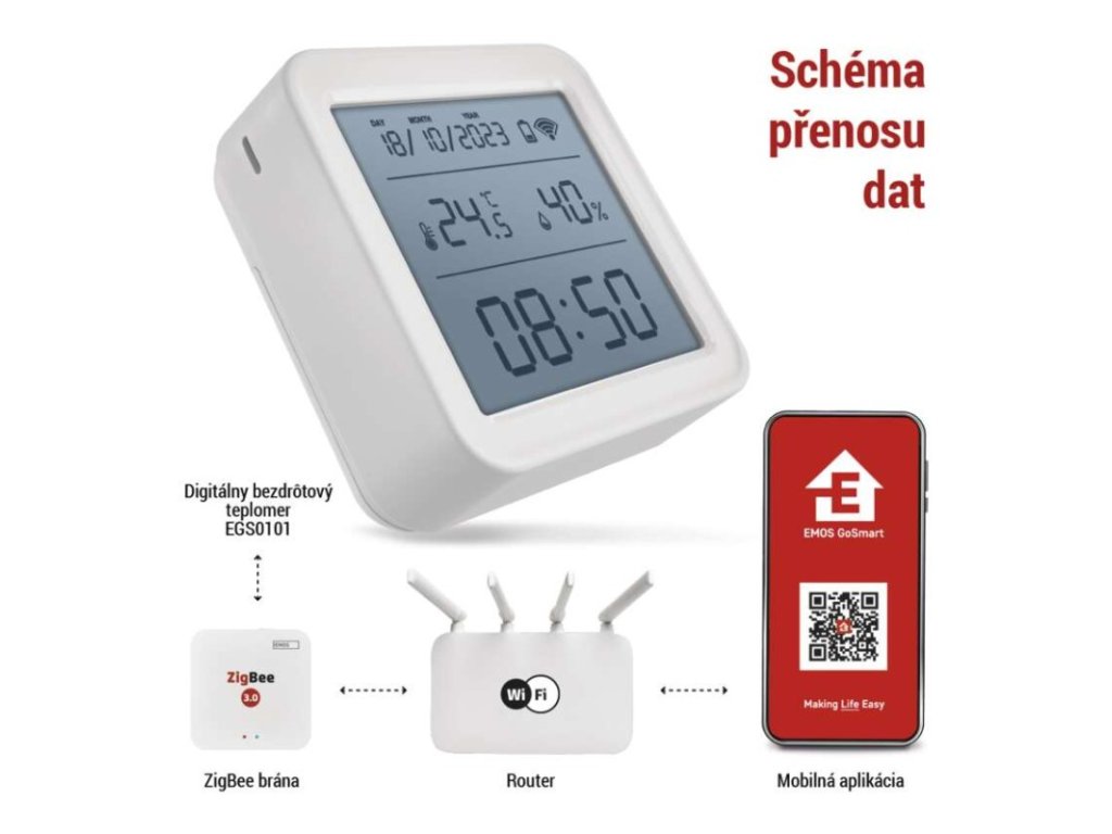GoSmart Digitálny teplomer s vhlkomerom, bezdrôtový snímač, dátum, ZigBee EGS0101
