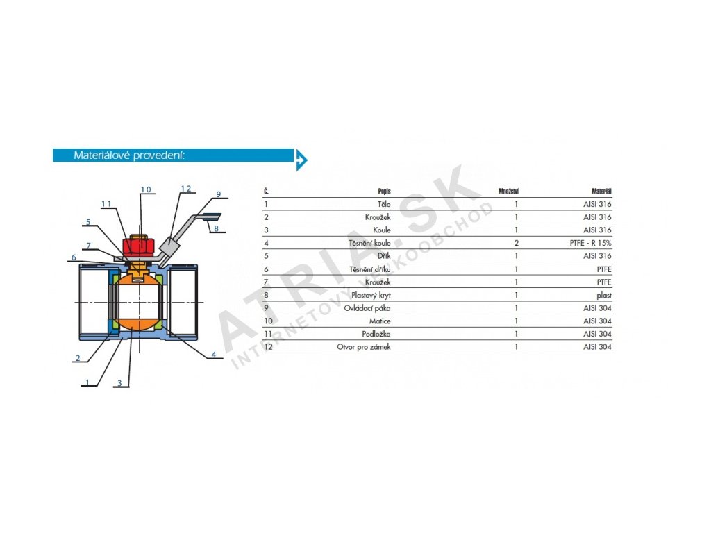 - materiál tesnenie: guľa a driek PTFE