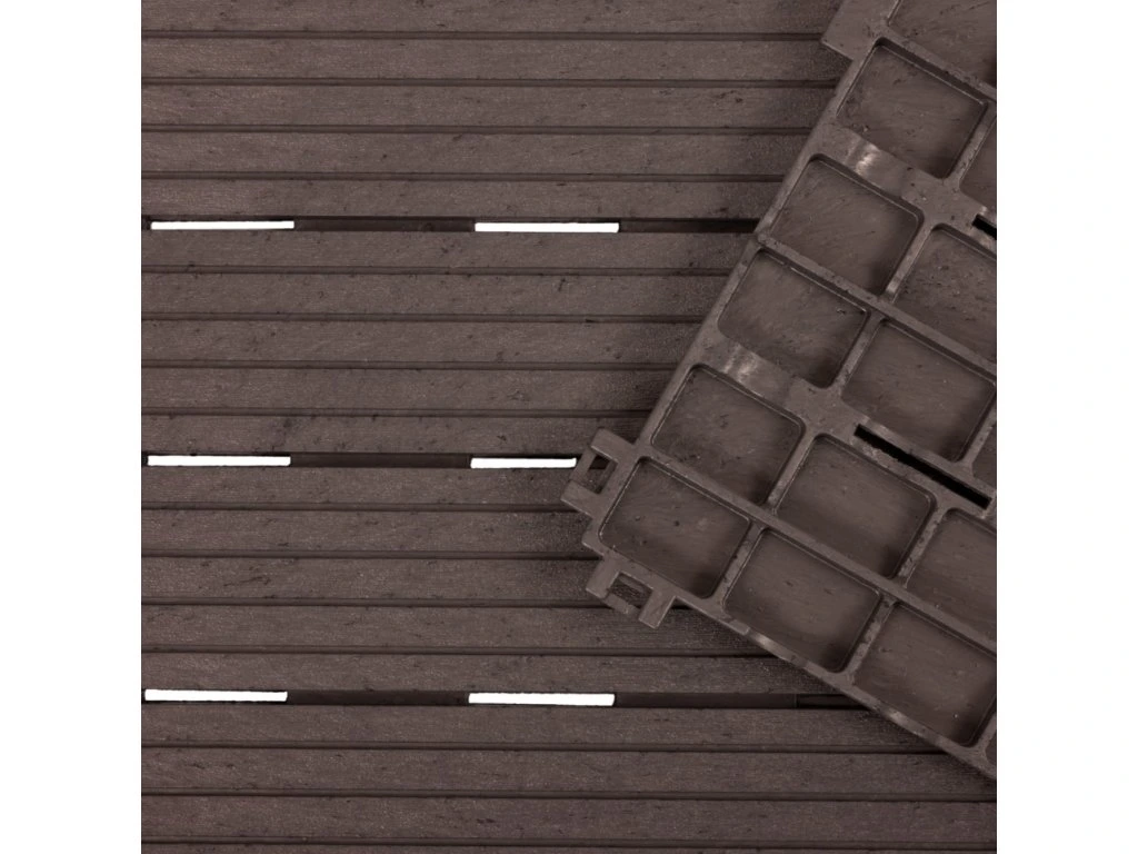 Podlahu môžete mať položenú behom pár hodín alebo za jedno popoludnie - záleží na veľkosti priestoru, kam dlažbu budete pokladať. Dlaždice majú praktické drážky, ktoré slúžia na odtok prebytočnej vody. Vďaka tomu sa voda nezhromažďuje medzi dlažbou a podkladom a nevznikne pleseň. Rovné dosadacie plochy zospodu dlaždice neponičia hydroizoláciu na vašej terase. Medzi izoláciu a dlažbu nemusíte vkladať ďalšiu tkaninu. Dlažba sa upevňuje pomocou bočných spojovacích háčikov, tzv. systémom Quick - Click. Prehľadný návod si môžete .